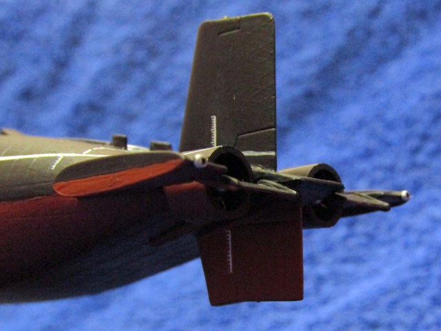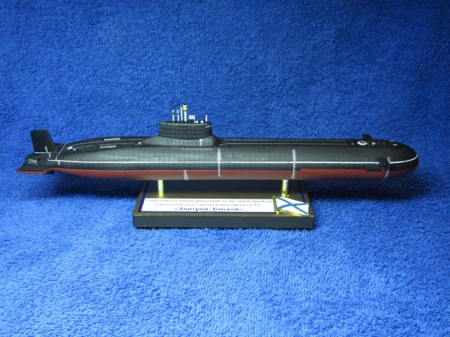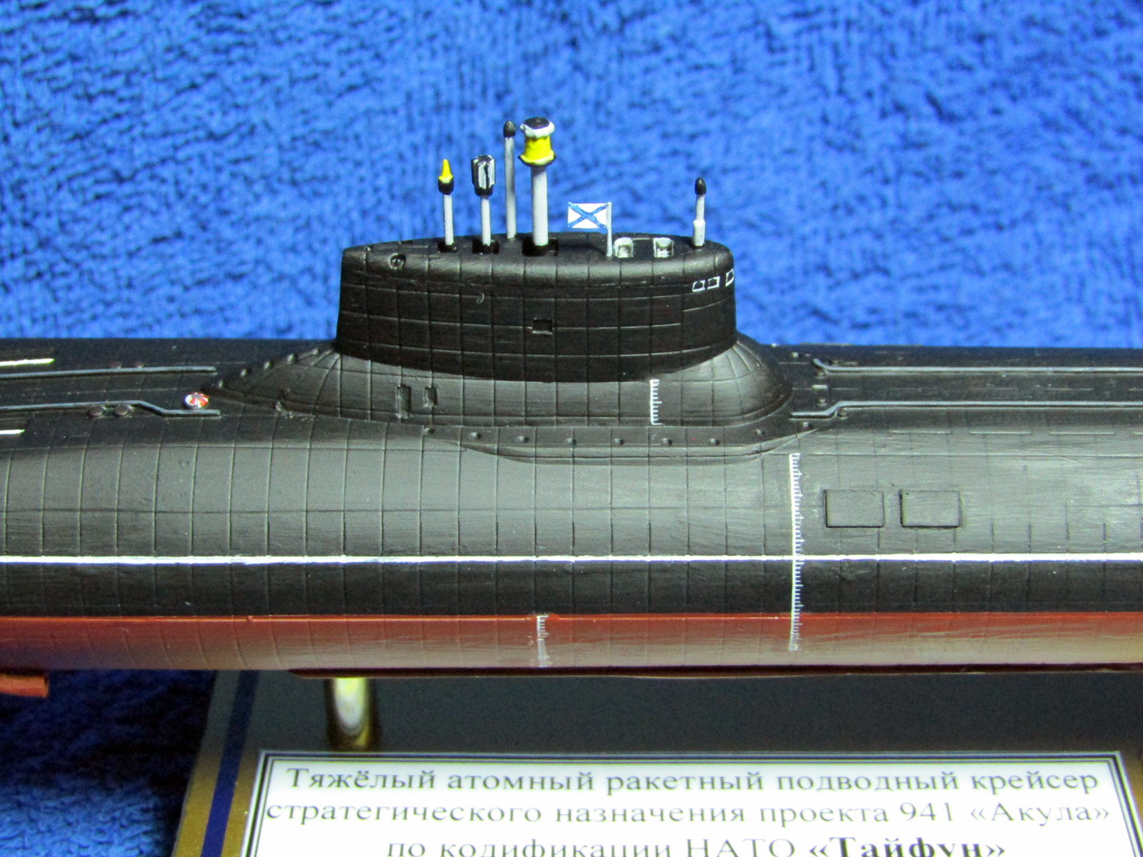 Комингс-площадка окрашена аллюминием (на фото не видно из-за яркого света), окантовка белая как Вы и пишите. Аварийный люк красил по фото (прилагается). Фото кормы округлой формы видел, но не понял что это именно "Дмитрий Донской". Вообще в интернете крайне-мало информации, особенно по окраске корпуса. А вот насчёт "косяка" производителя готов поспорить (прилагаю фотку), производитель даёт общее название проекту 941 как "Тайфун" и такое оперение имеет место быть. Высверливать каналы выпуска гибки антенн в таком масштабе вообще посчитал нецелесообразным. Скуловые кили есть не на всех фотографиях и картинках в интернете, поэтому непонятно на каких подлодках они должны быть (их же всего шесть было). Что за полукруглый выступ за аварийным люком я тоже не понял, не стал срезать. На счёт боковых аппарелей согласен. Вообще можно бесконечно спорить, но к однозначному выводу никогда не придём, ведь данный объекты засекречены...В целом, я считаю, подлодка у меня получилась похожа на прототип, а к мелочам можно цепляться бесконечно, у других моделистов я тоже видел массу косяков и неточностей.