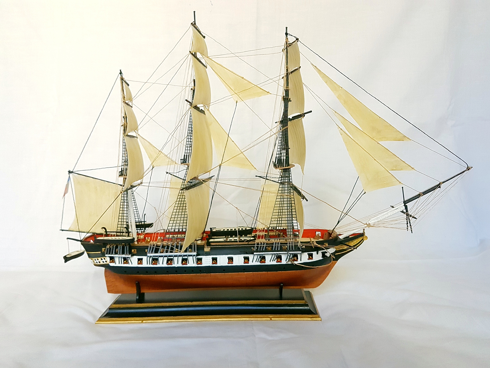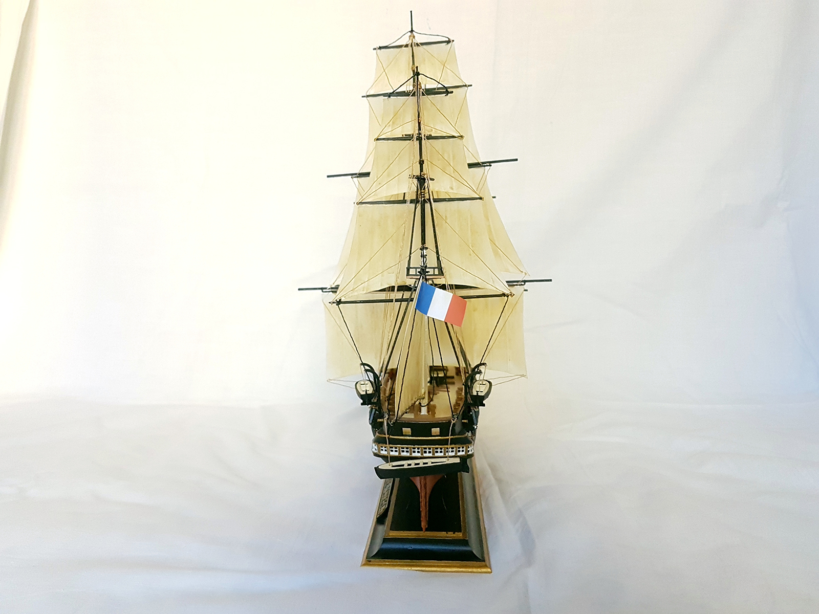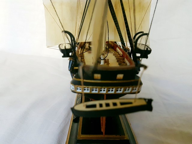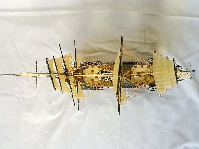 На мой взгляд мы видим нормальную, изкоробочную модель. Все сделано достаточно аккуратно, добавлен такелаж, очень хорошая окраска. Вполне достойные паруса.