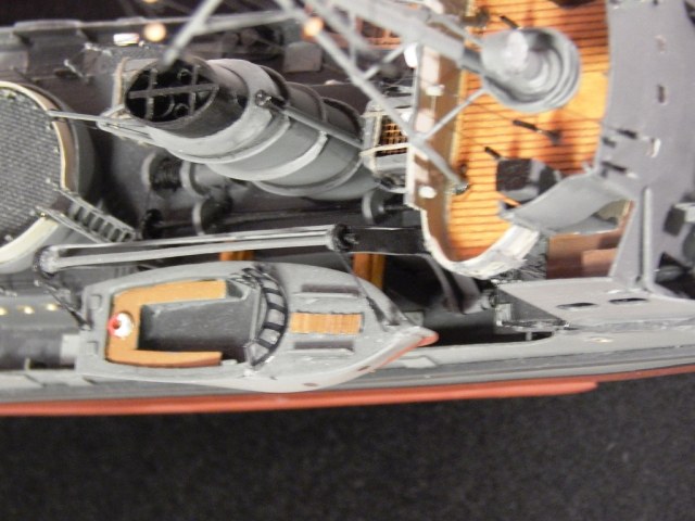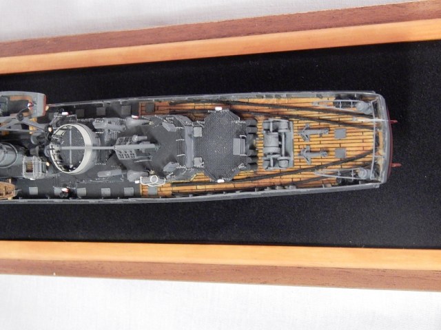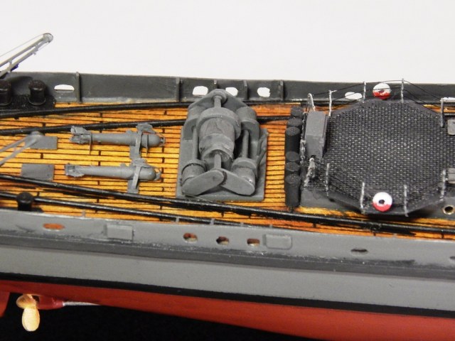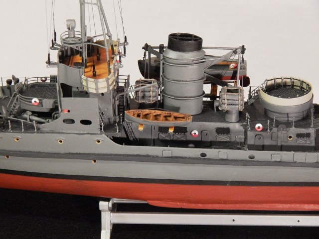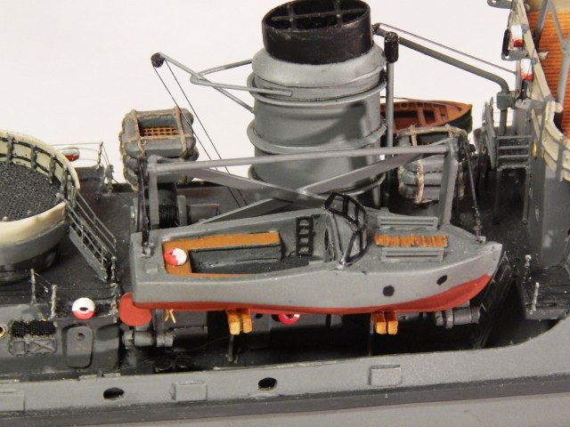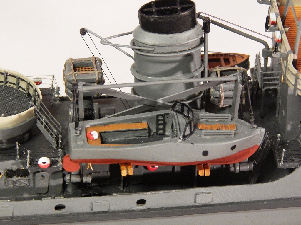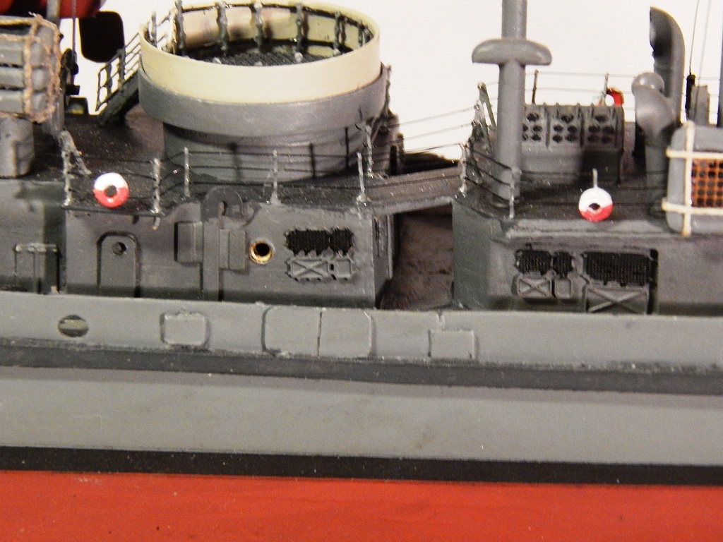 При постройке применял оставшиеся от «Бисмарка» травлёные детали, леерные стойки, покупная якорная цепь, клюзы, точёные кнехты. Параваны от NorthStarModels, литники и пр. мелочи.