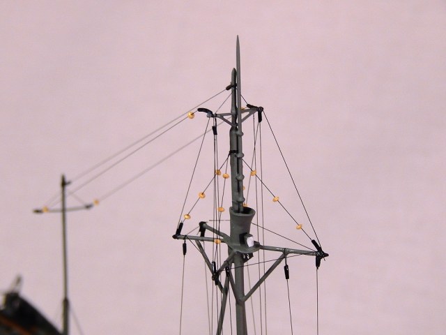 Спасибо, Я не спорю, не знал, хотя блок и трос на гафеле (На трубе)сделан, но меня смутило наличие второй мачты "новодела". Есть фото "Курса" в полной раскраске с "праздничными флажками", но фото "тяжёлое" не могу сделать легче и разместить. С уважением