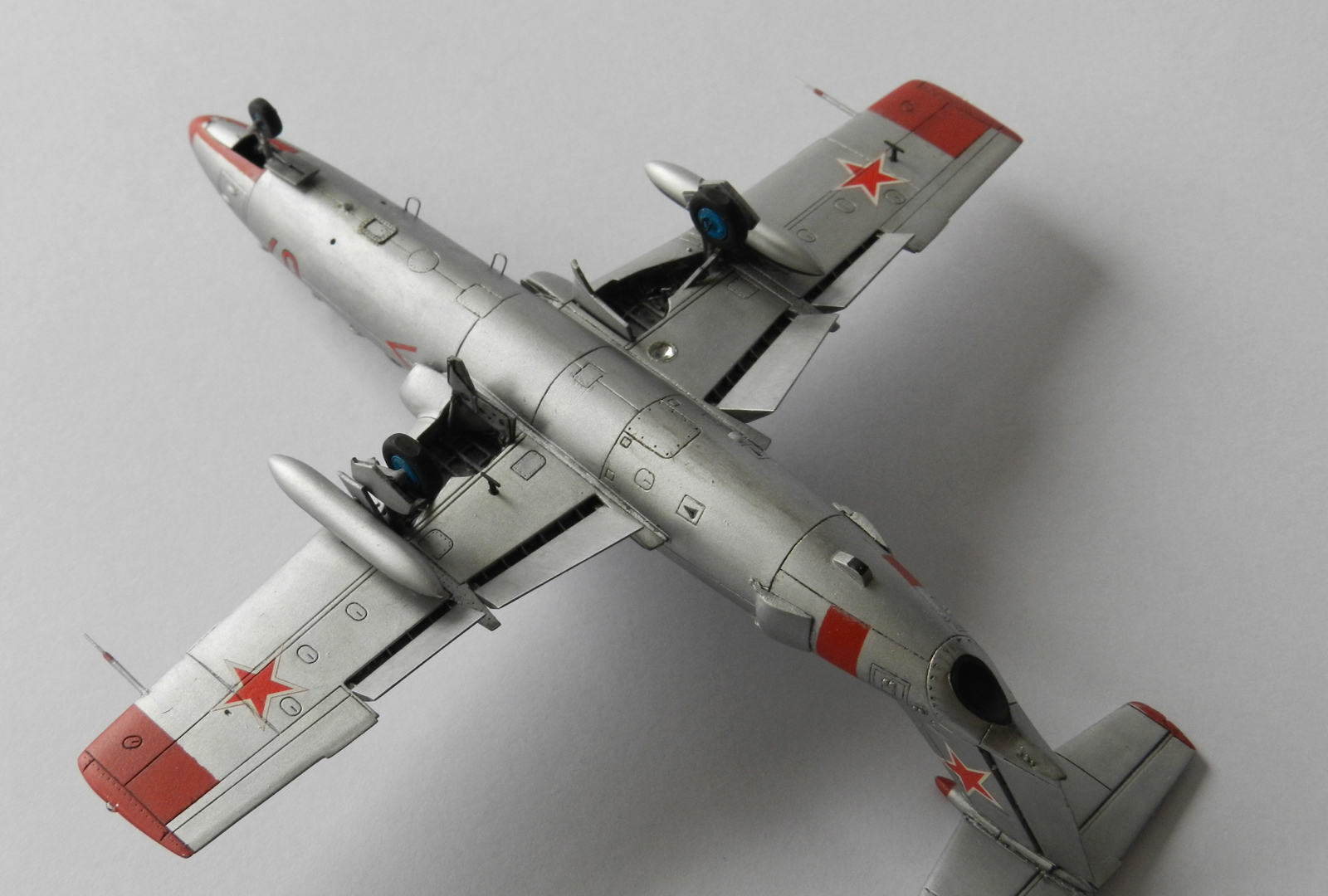Проблемы возникли с центровкой, носовая ниша не позволяла разместить достаточное количество груза. После полной сборки выяснилось что расчеты были ошибочными и модель села на хвост. Пришлось замаскировать небольшой грузик под створкой передней опоры.
