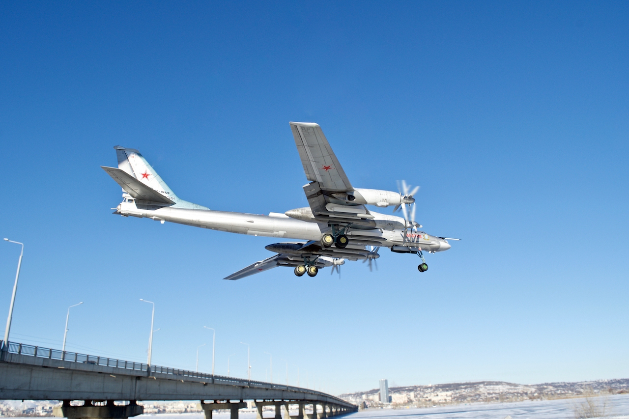 Итак, маленькая справочка с "Вики": Ту-95 (проект «95», изделие «В», по кодификации НАТО: Bear — «Медведь») — советский и российский турбовинтовойстратегический бомбардировщик-ракетоносец, самый скоростной в мире самолёт с винтовыми двигателями[5]. До настоящего времени — единственный в мире серийный бомбардировщик и ракетоносец с турбовинтовыми двигателями. Являлся советским символом обеспечения военно-стратегического паритета[6] в холодной войне. Остаётся на службе как носитель крылатых ракет, в том числе самых совершенных, таких, как Х-101, благодаря более низкому расходу топлива, чем у реактивных самолётов, а главное — большей скрытностью от спутников SBIRS, способных по выхлопу наблюдать крупные стратегические бомбардировщики на реактивных двигателях.
