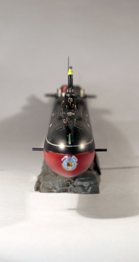 Сама сборка - почти чистая изкробка. Только часть выдвижных устройств поменял на самодел из игл и фольги, козырьки на рубки поменял на прозрачный пластик. В носовой отсек добавил торпеду УГСТ от Armata Models . Поставил несколько фигурок экипажа от Aber.