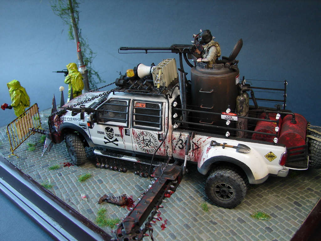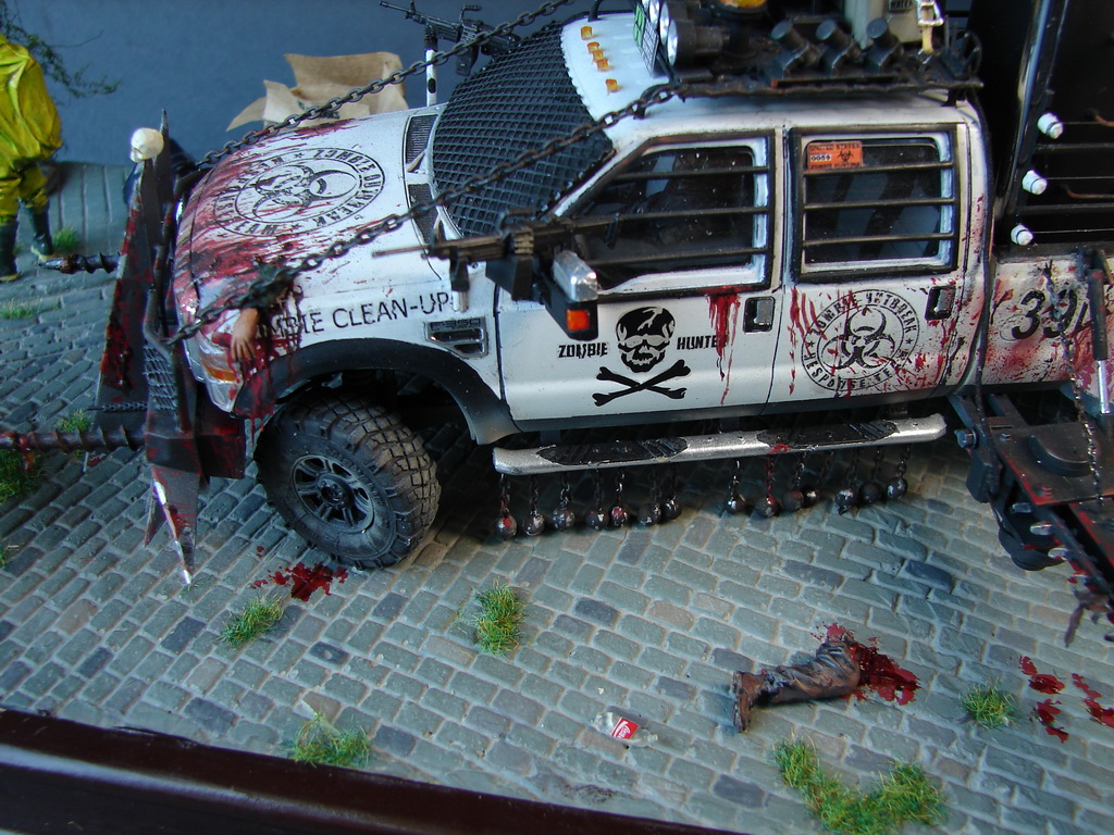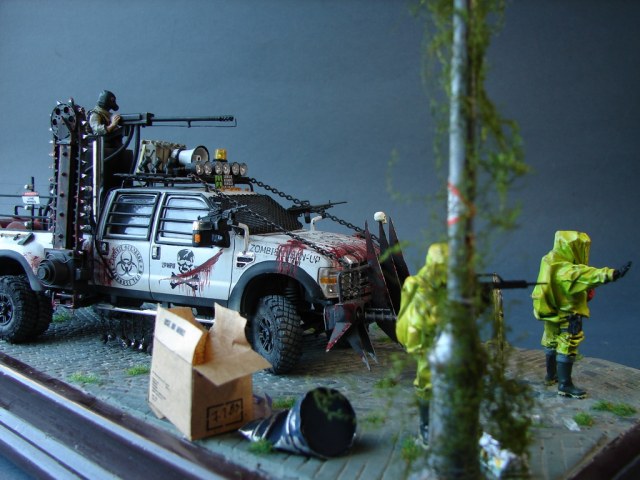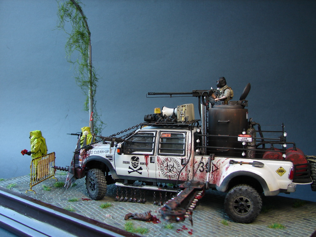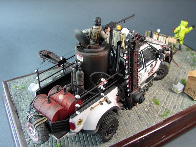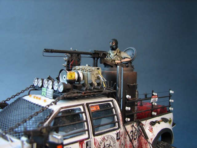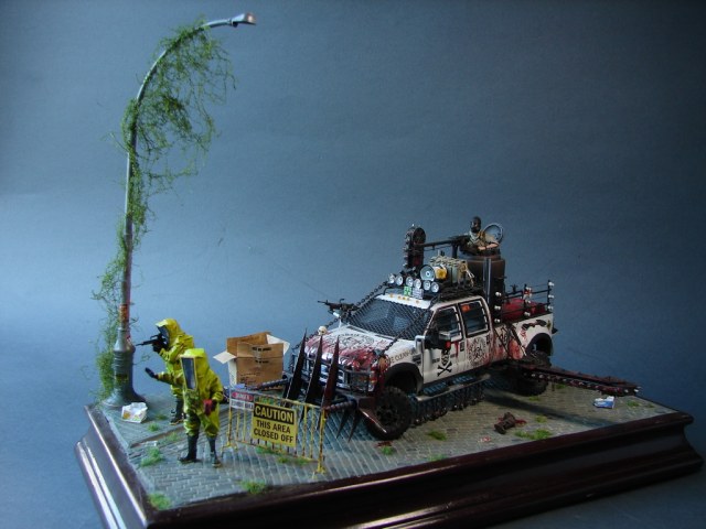Крутая по всем позициям работа: переделанный джип, роспись, фигурки, столб, передающий атмосферу апокалипсиса, детализация... в общем очень СИЛЬНО!