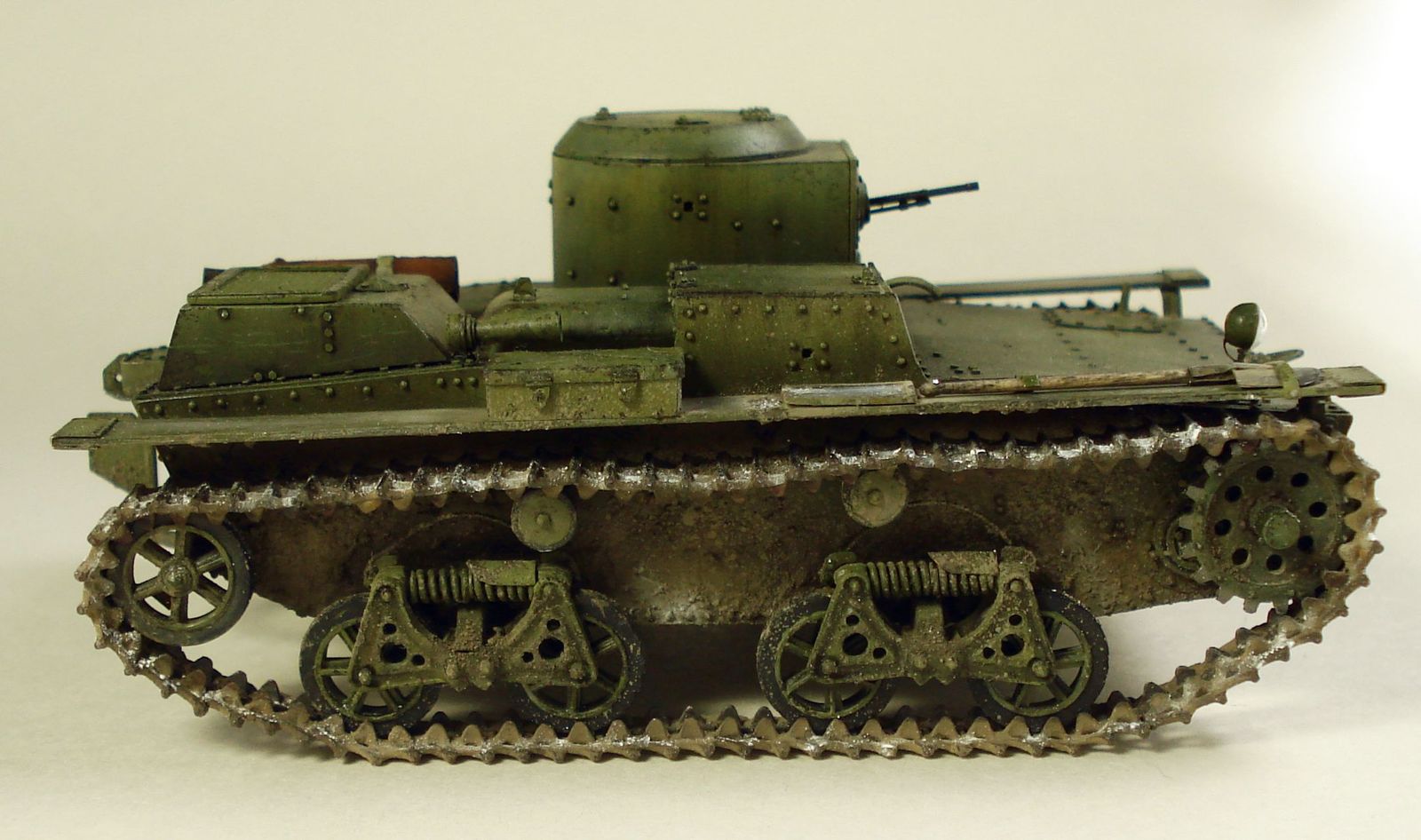 К модели присобачена ходовая от Т-37, поскольку родную победить я бы точно не смог. Также я попытался поиграться с деталировкой, да собственно и другого выхода не было.