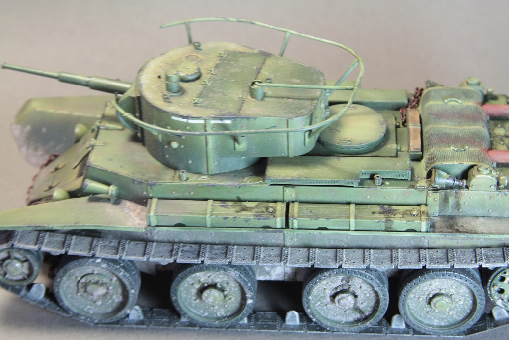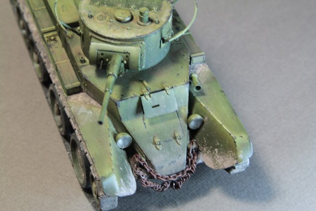 И набор,и работа-хороши.Фото конечно-не самые удачные.На крупных планах-цветопередача более тёплая-правда пребор с каррозией сразу возобладает,А остальные фото-в каких то холодных тонах-что сразу сказывается на базовом цвете.Работа мне понравилась,я вообще люблю нашу раннюю броню.С уважением