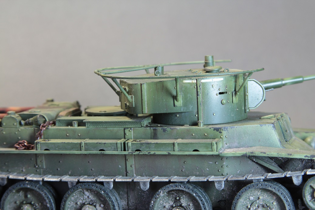 Коллеги, хочу предложить вашему внимаю модель собранную чуть больше двух лет назад это БТ 7 от фирмы Tamiya. Данная модель была подарена мне Пашей и Мишей за что им большое спасибо, затем на новогодние праздники была собрана и покрашена. Модель полностью из коробки красилось тамией, пигменты миг, тонировка маслом и АК.