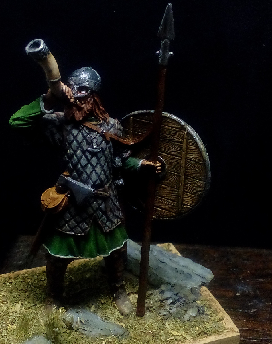Олово от EK Castings,вторая моя миниатюра.Довольно харизматичный парень на мой взгляд.Работать было с ним интересно,но в этот раз было и трудновато.Много косяков на самой фигуре,часть из них заметил уже в процессе росписи,а спиртовые ванны данный товарищ принимал раза четыре))).Использовал акрил Ладога,попробовал темперу(штаны),масло.