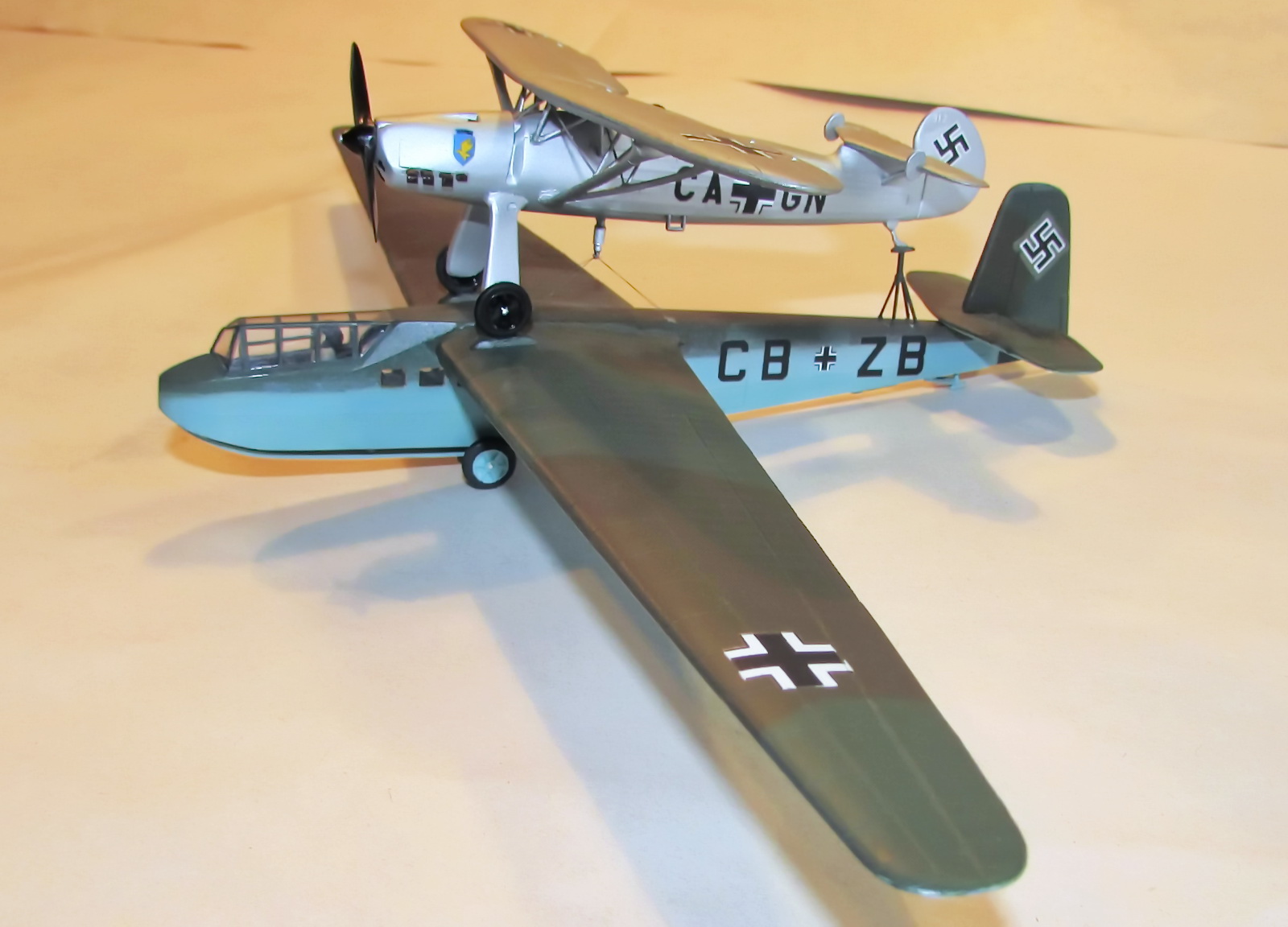 Я вот думаю - ведь такой "мотопланер" сам бы никогда не взлетел. Ну не хватило б мощщи у 400 сильного Аргуса! Его ведь наверное затягивали в небо буксиром, а потом уже прицепленный самолетик делал "точную наводку на цель". :-)