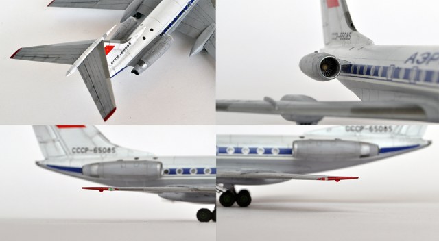 Предлагаю вашему вниманию ещё один Ту-134а, построенный в рамках ГБ на соседнем ресурсе. На этот раз ливрея и декаль искоробочная. Пересверлил иллюминаторы до правильного их расположения, добавил датчики ППС, ППД, БАНО, маяки, вырезал сопло ВСУ. На стоковой декали методом хирургии убрал завал читлайна вниз в районе носа. В остальном искоробка без перепилов.