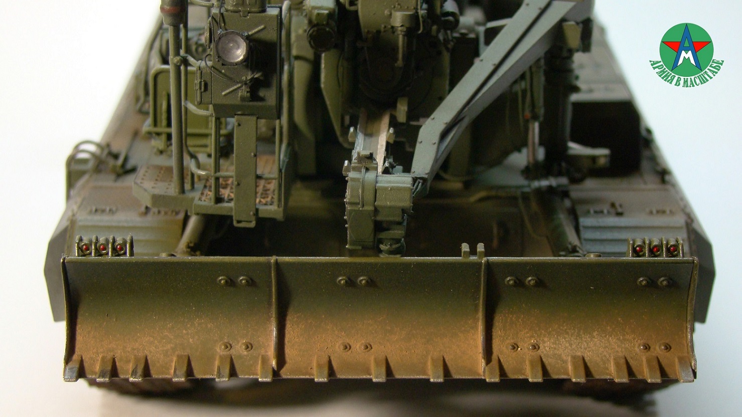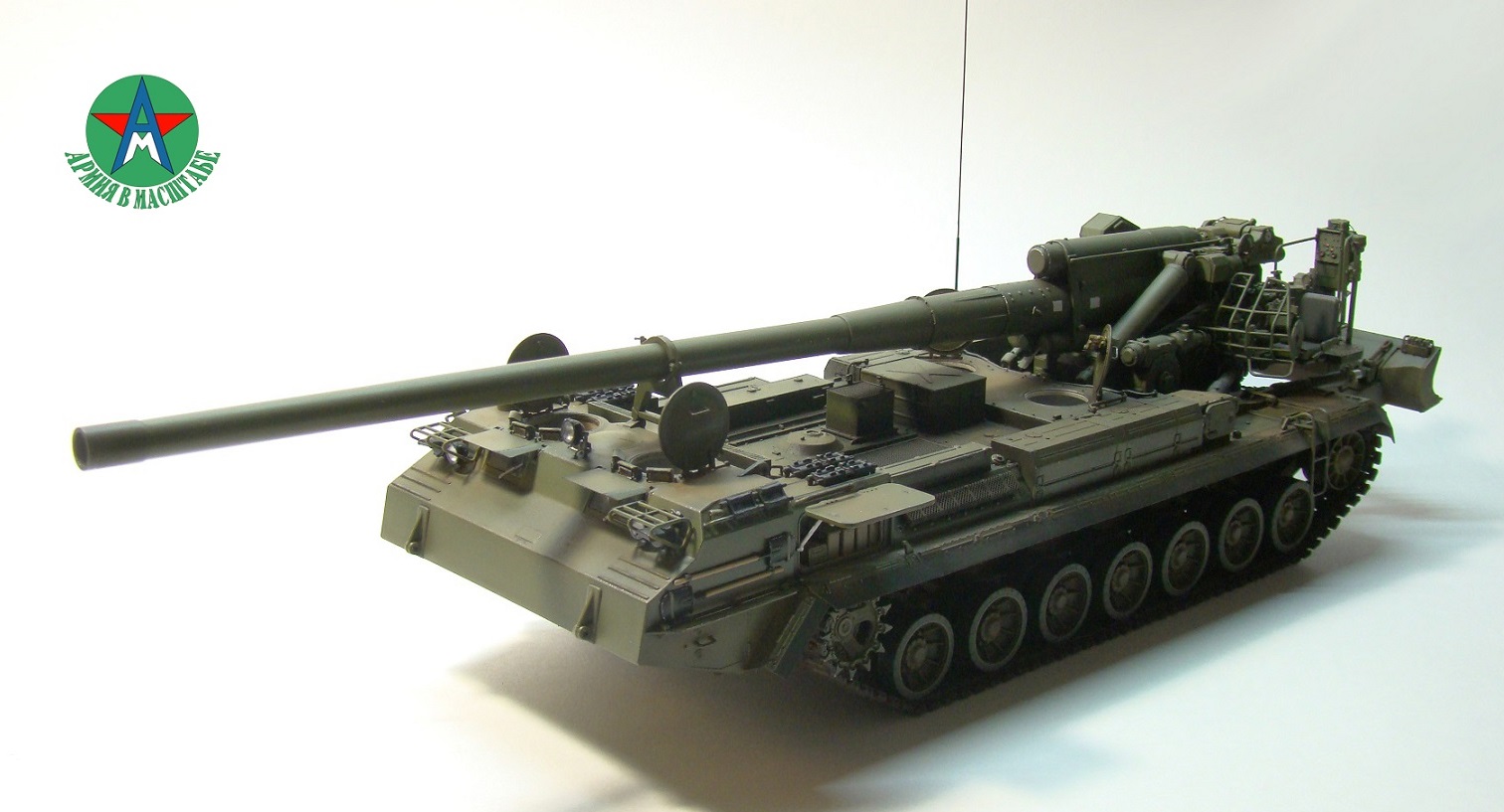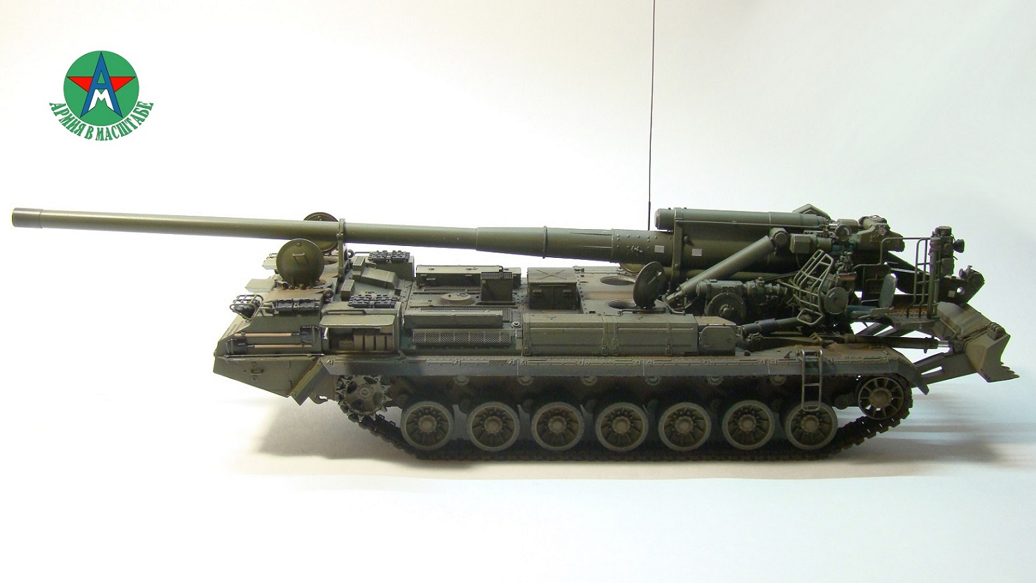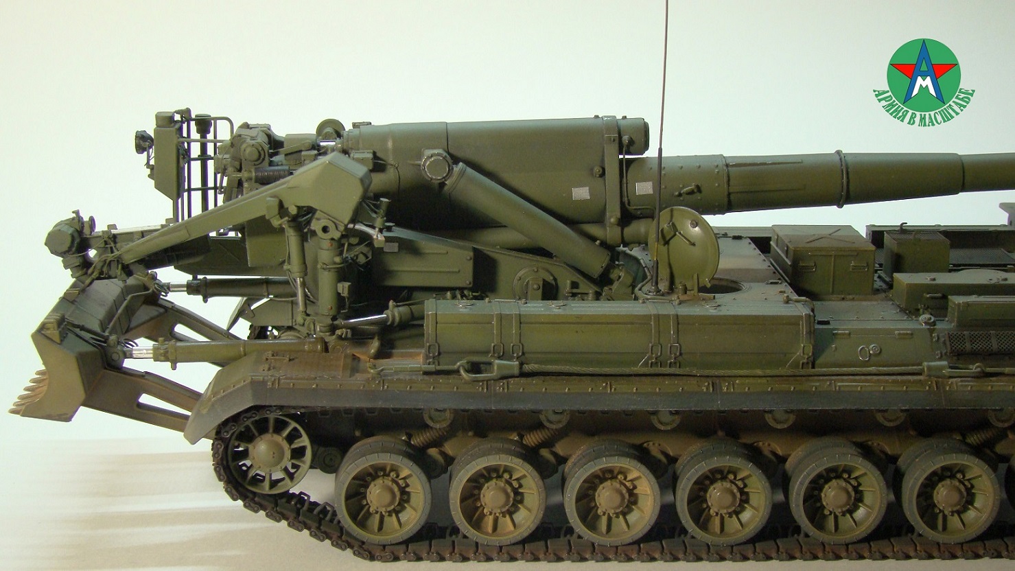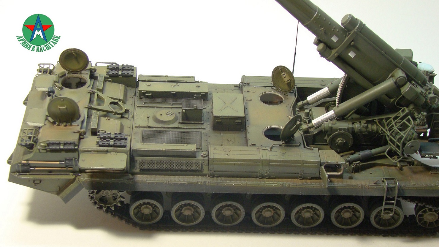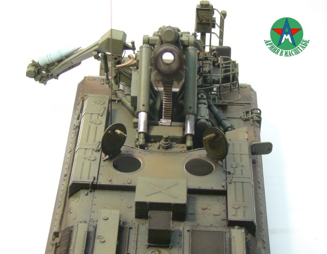 Модель собирал с минимальным количеством шпатлёвки, и с большим количеством доработок. Полностью переделал отсек арт расчёта, производитель даёт его не правильным, сделал заднюю часть гусеничной ленты подвижной, для возможности перевода из походного положения в боевое, сделал имитацию гидро тробок, проводки, штоки на подающе-зарядном механизме металлические.