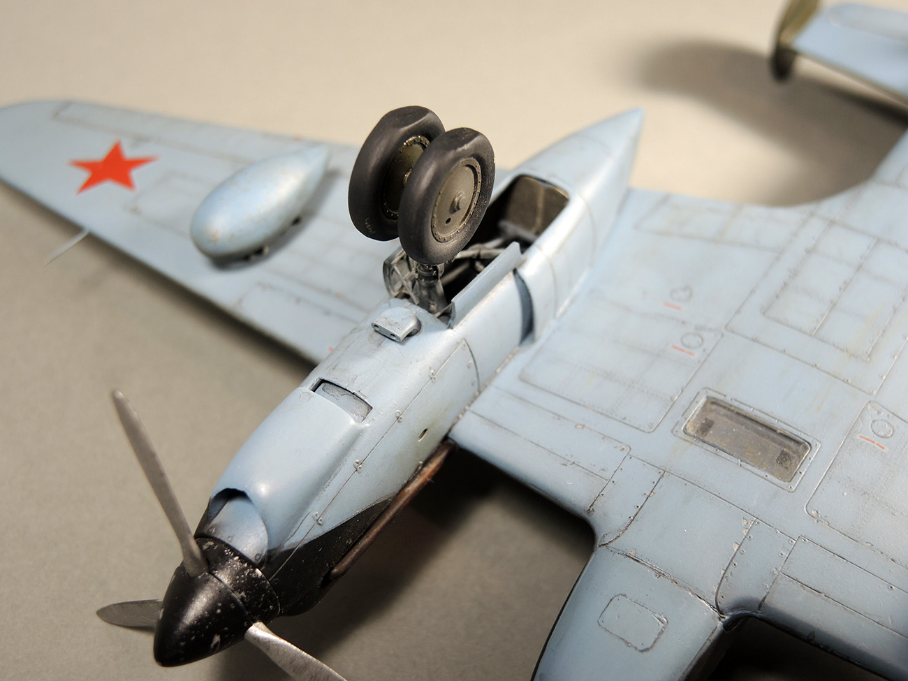 Модель превосходна, но нет пределу совершенства, поэтому позволю высказать пару пожеланий: Смотровой люк штурмана. Плохо видно, но похоже за ним сплошной пол кабины (неокрашенный?). "Моделист-Конструктор. С.Яковлев. Во имя скорости." Там есть чертеж из которого понятно, как и что, через тот смотровой юк должно просматриваться.
