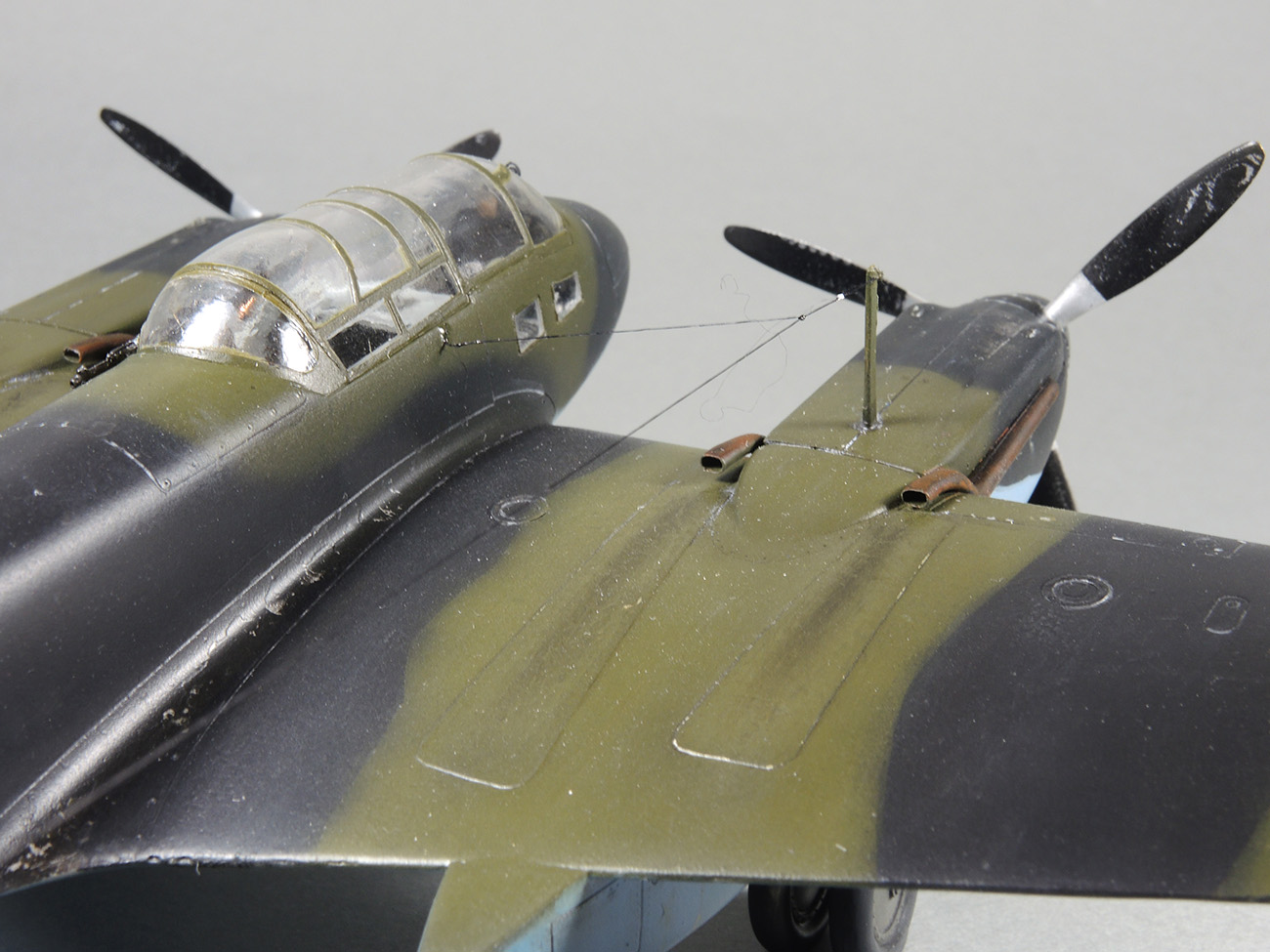 Заметны следы клея на стыке мотогандол и крыла. Излишки клея присутствуют и на шве стыковки фонаря и кабины. Есть недочёты и по матчасти, но то такое.