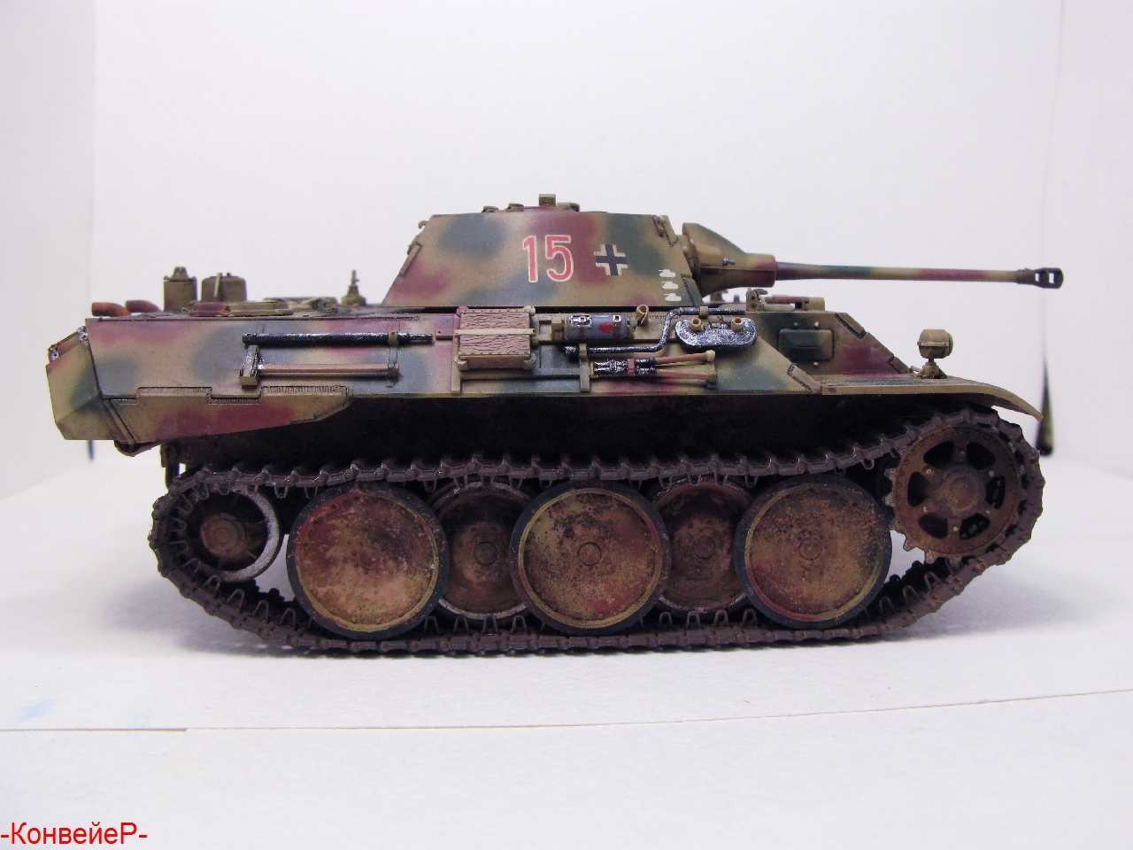 Из дополнительного афтермаркета были куплены только гусеницы от Tamiya, так как родные было очень сложно было сделать рабочими.