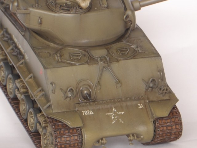 Коробочная сборка танка m4a3e8 от фирмы Tamiya. Попытка сделать сделать машину 702 батальона "Красные дьяволы", март-апрель 1945 года.