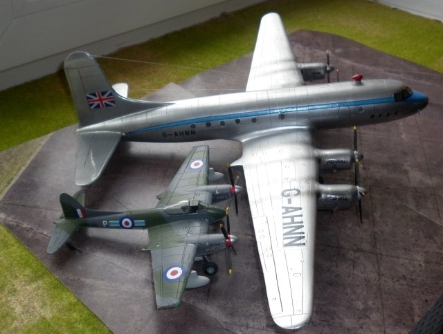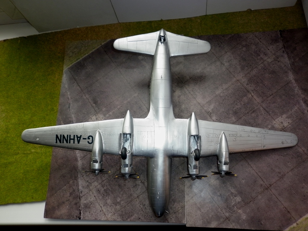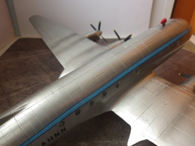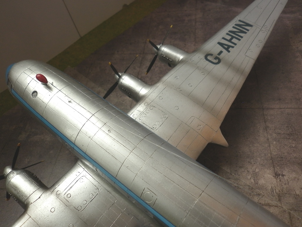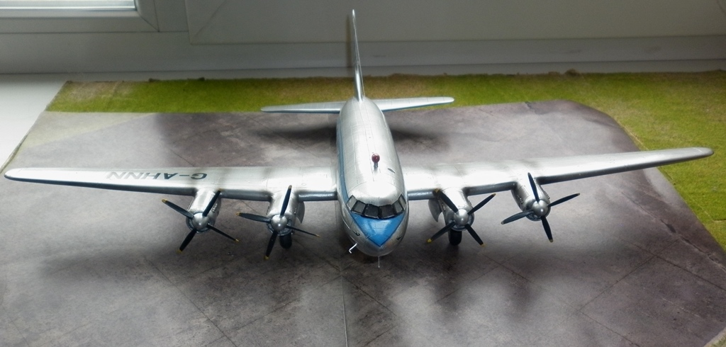 О сборке модели особо писать нечего - вакушка она и есть вакушка. Чуть больше работы с отделением от основания деталей, чуть больше пришлось поработать над силовым каркасом , но больше всего пришлось поработать над поиском материалов. Если с кроем крыла , нишами и стойками шасси помог родственник- шеклетон AEW 2, то деталировку и крой фюзеляжа прищлось делать по фото. Дело осложнялось что самолеты даже одной модификации сильно отличались друг от друга иллюминаторами, капотированием двигатилей, патрубками. Да и сами машины перестраивались во время эксплуатации. Представленная машина поначалу имела патрубки , выведенные в два коллектора на каждый мотор , то есть за гладким капотом перед крылом торчали пара выхлопных труб.