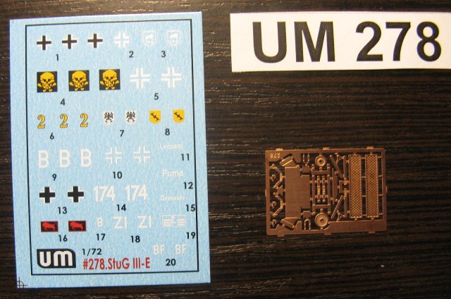 На первый взгляд - типичный УМ. Детали дубовые, местами проработанные, местами упрощенные. Надгусеничные полки хоть и не рифленые, но зато чистые, можно приклеить фольгу от сигарет. Шанец толстоват, но думаю подточить можно.
