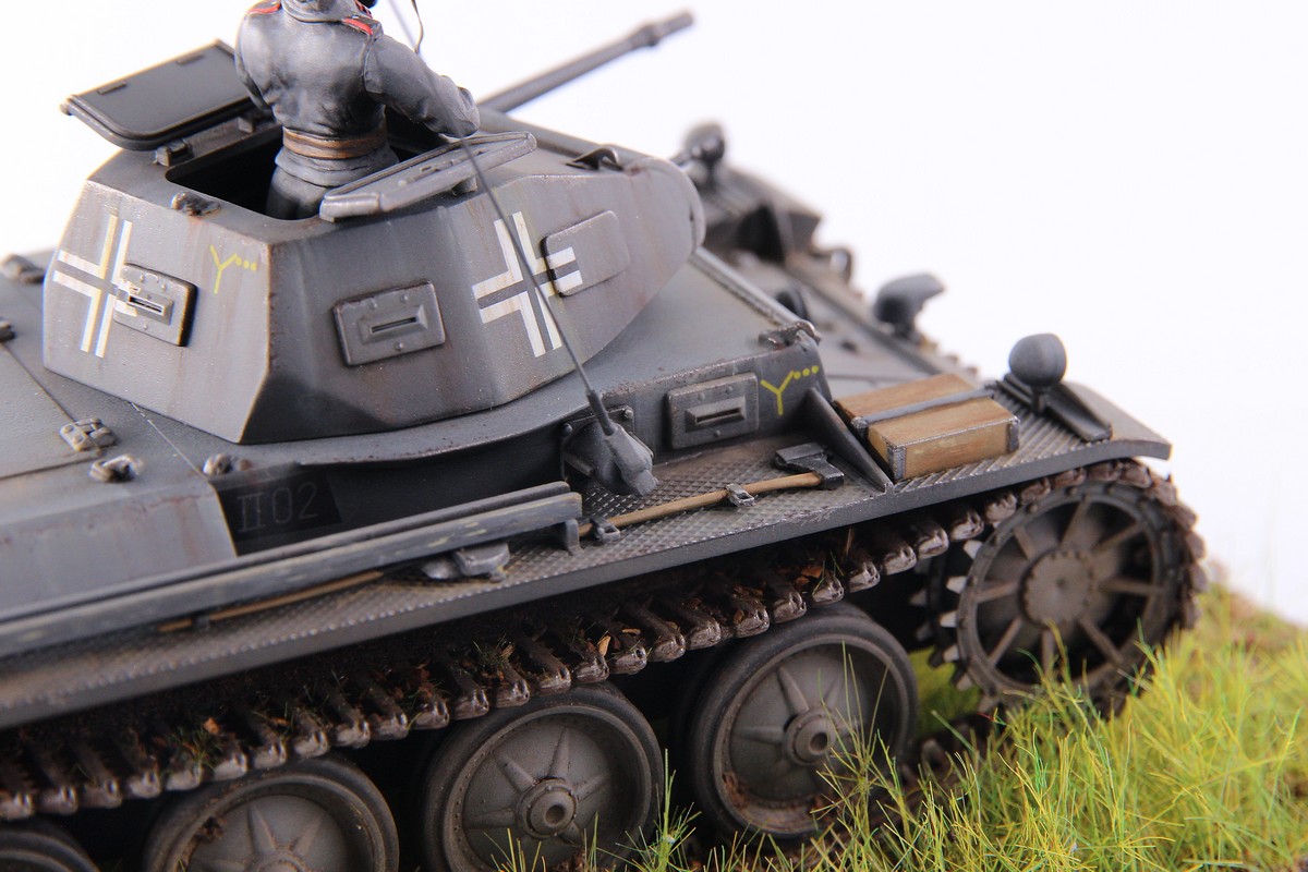 Данная работа ни что иное , как переработка ненужного хлама . Качество наборов просто ужасное . На машине заменил шансовый инструмент из других наборов , сделал фары без светомаскировки ( для украшения ) , поставил антену , проводку к фарам .