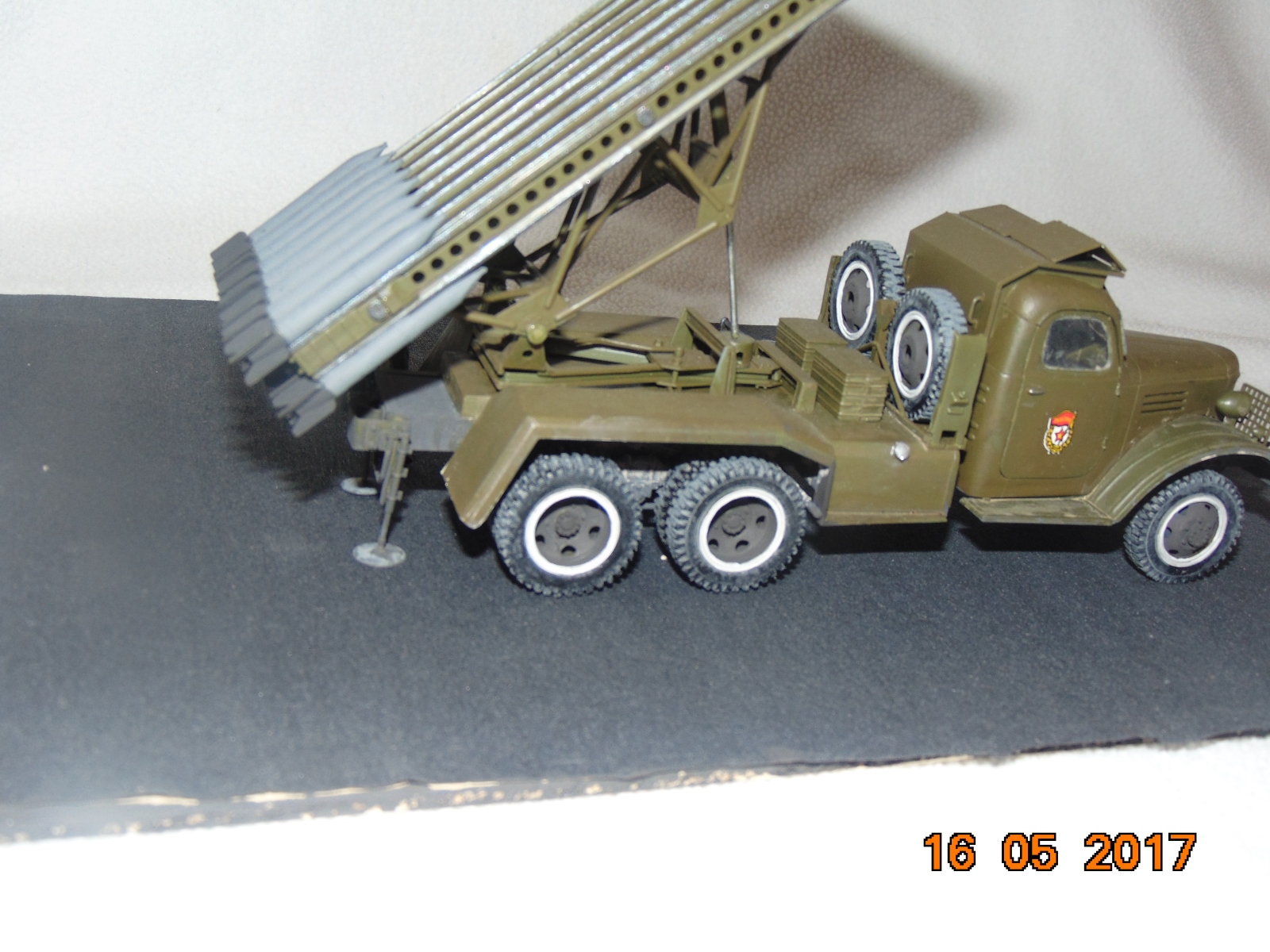Модель Катюши от Звезды масштаб 1/35. Собиралась около 2 месяцев. Красил кисточкой также красками звезды. Опыта с покраской особо не имею, поэтому красил как мог)