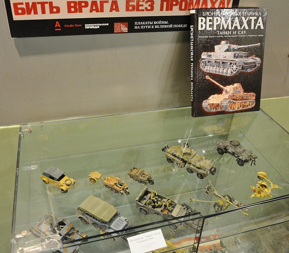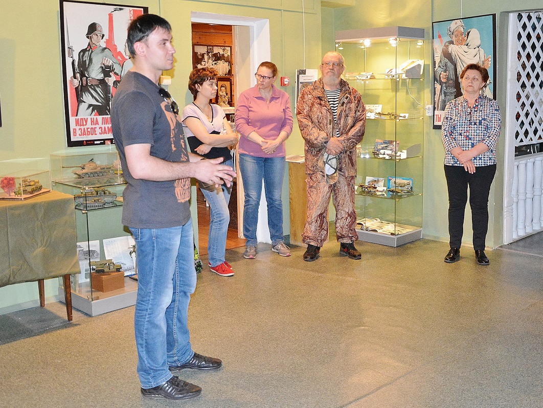 Осваиваем новые экспозиционные территории. :-) На этот раз поставили выставку в нашем городском музее. Надеюсь выставки станут регулярными. Думаю в следующем году уже и конкурс провести. Открыли скромно и без пафоса, собрались сами собою, сказали слова, поглазели, сфотались и пошли пить пиво в музейный двор. (Санкционировано и согласованно с руководством, типа - фуршет. Мужской фуршет. Не шампусик с виноградом, а пиво с рыбой). Всего - 201 модель от 12ти моделистов. Это даже слишком много для такого зала. Конечно, много и "ломья" и детского косяпорства. В первый раз брал все подряд на выставку, на следующую буду уже жестоко отбирать по уровню исполнения. Самому младшему участнику - 13 лет, самому маститому 67. На момент фото не все модели снабжены табличками. Особенно БТТ. Понемногу печатаю, расставляю. В зале конечно свет плохой. Надо покупать нормальные светодиодные лампы в витрины. Гвоздиками программы без сомнения стали замечательные "Кашки" от нашего коллеги Тайфуна. Подробнее их можно рассмотреть на его странице. http://karopka.ru/community/user/16589/