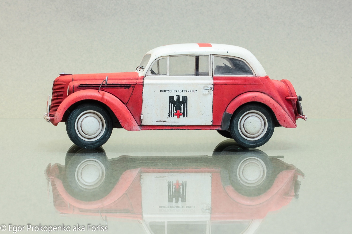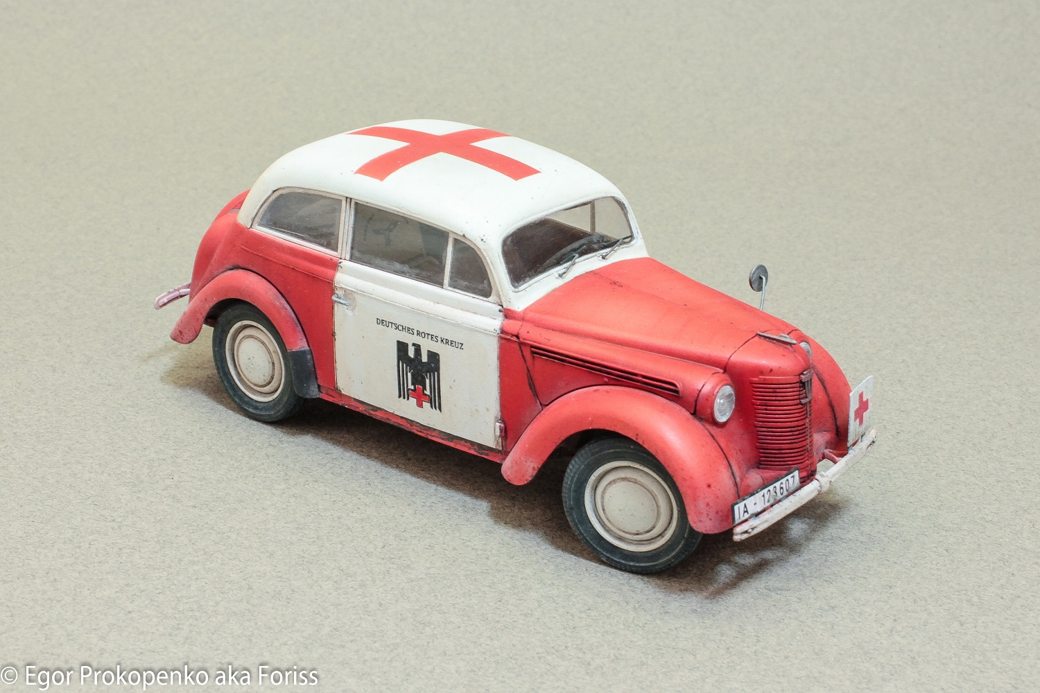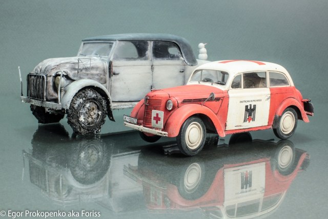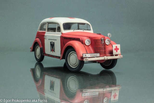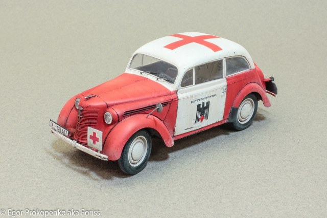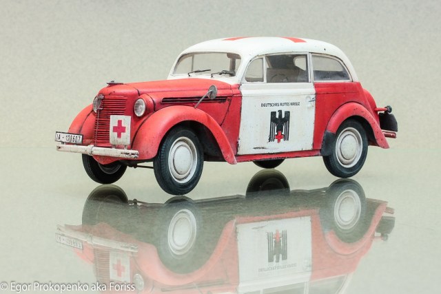 Представляю свою новую модель автомобиля – Опель Кадет, очередная попытка сделать обычную модель необычной. В сети видел много фото автомобилей немецкого красного креста, поэтому решил взять эту идею за основу, конкретной привязки, к конкретной машине нет.