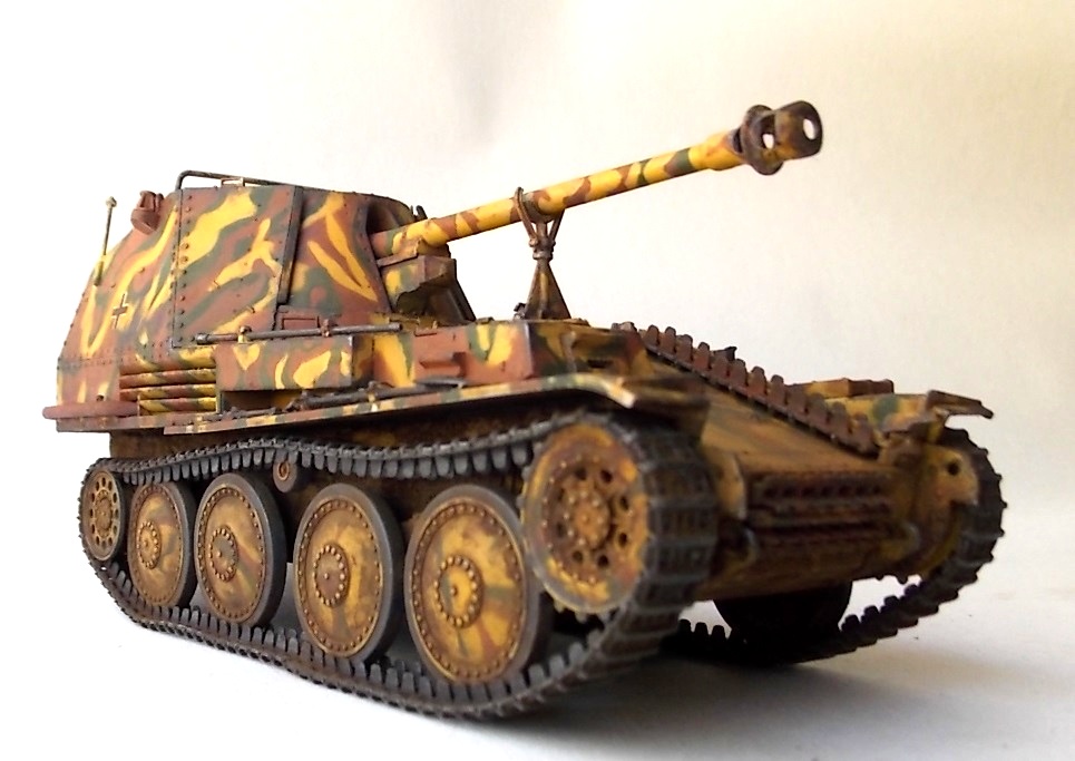 Представляю вашему вниманию свою новую работу Marder III M. Это известный набор от Тамии. Так как на "Каропке.ру" есть много моделей этой машины, я окрашивал свою самоходку в камуфляж, не представленный еще на сайте. За основу окраски я взял предложенную схему от производителя.