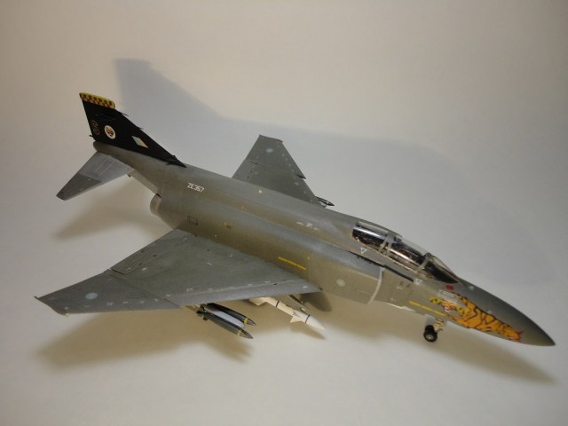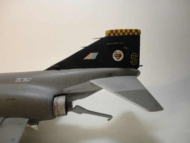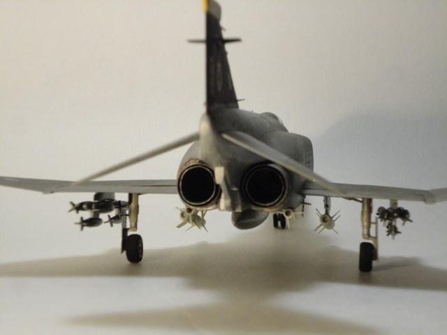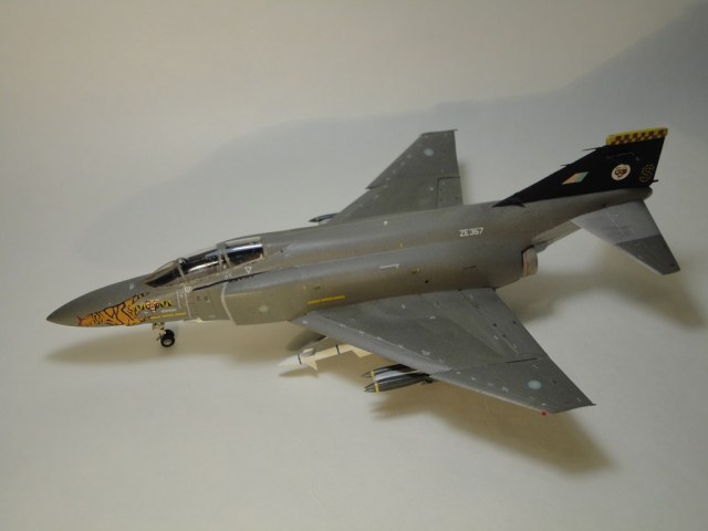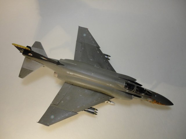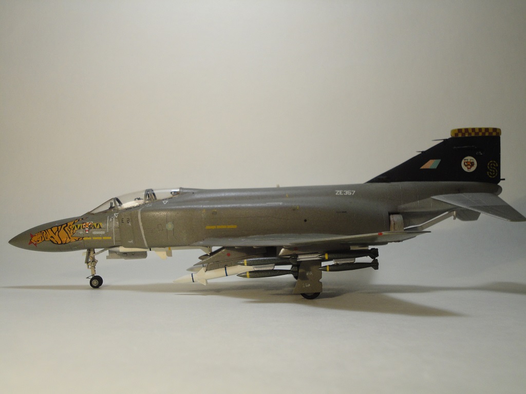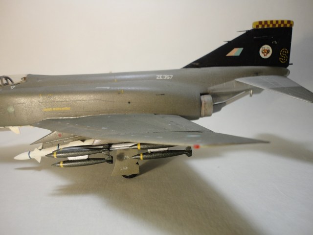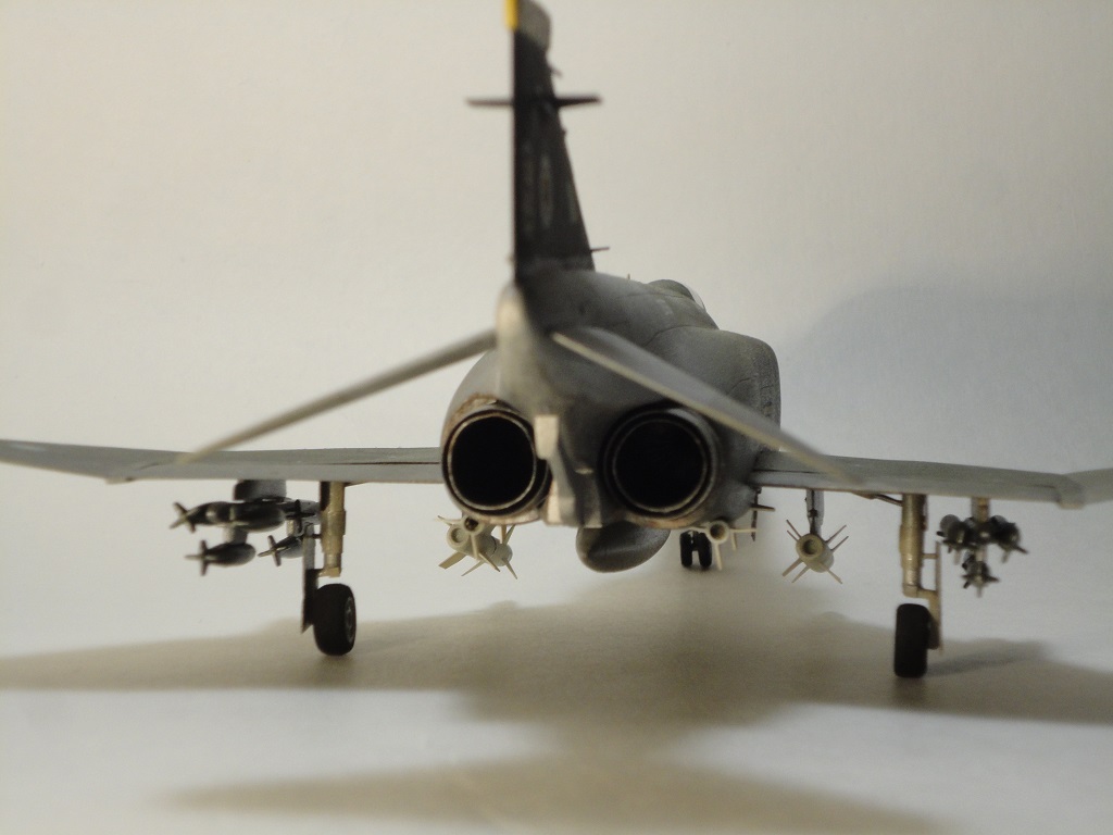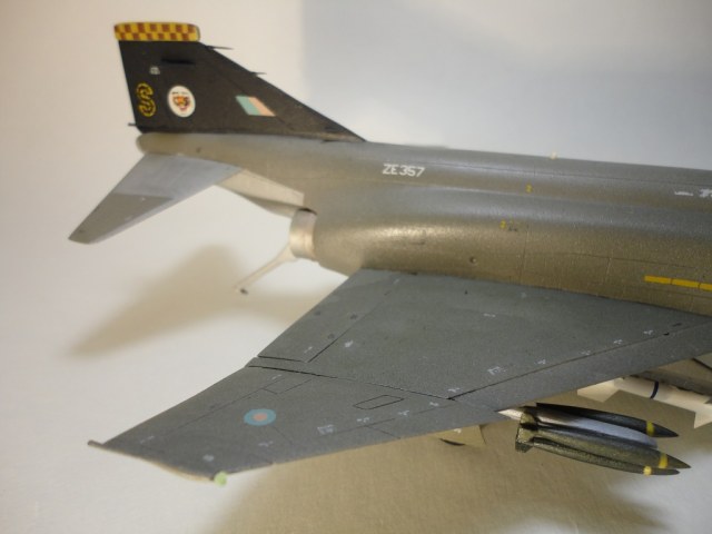 Не стоит делать макросьёмку, на которой видна зернистость. И стоит покопать матчасть. Такую подкрыльевую подвеску Бритишфантомы не несли. Фирма Хасегава, разработавшая сию модельку, сделала микс из F-4В и F-4J и вложила в коробку сопла на Бритишфантом. Лучше отломать такую подвеску и приклеить новую. А так для ново просто шик.