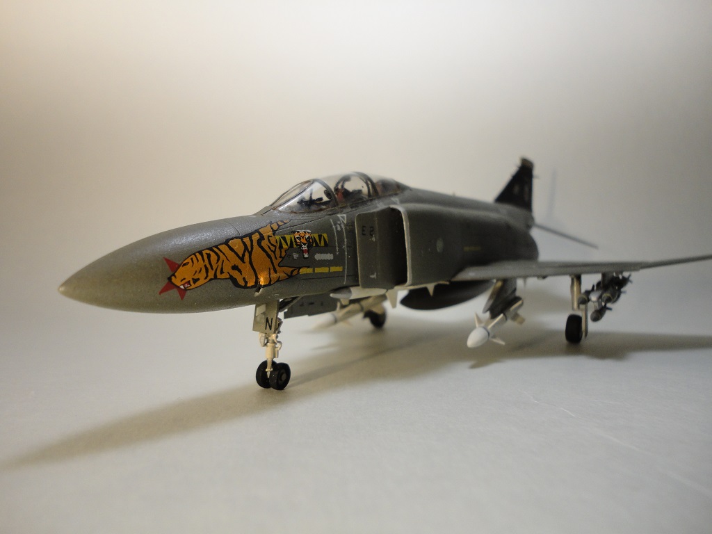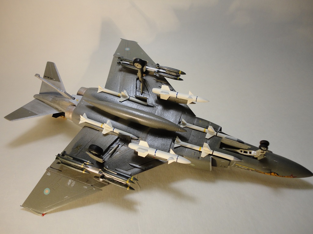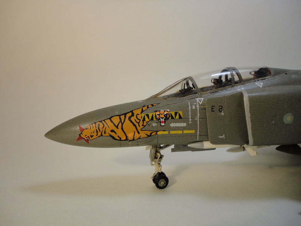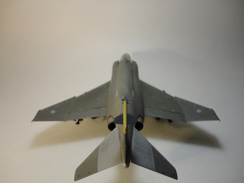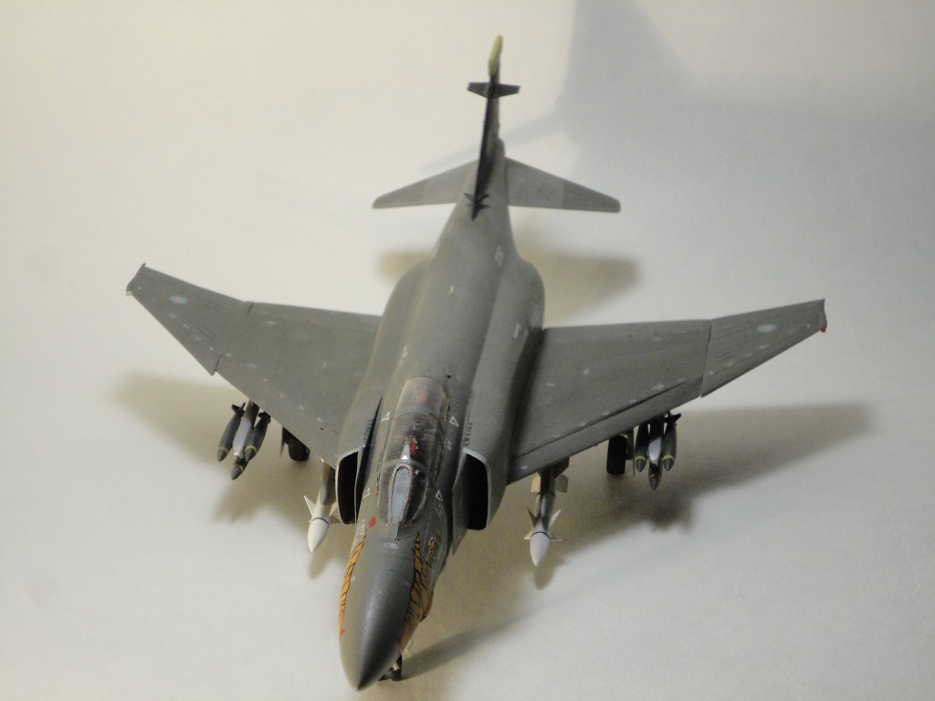 Не стоит делать макросьёмку, на которой видна зернистость. И стоит покопать матчасть. Такую подкрыльевую подвеску Бритишфантомы не несли. Фирма Хасегава, разработавшая сию модельку, сделала микс из F-4В и F-4J и вложила в коробку сопла на Бритишфантом. Лучше отломать такую подвеску и приклеить новую. А так для ново просто шик.