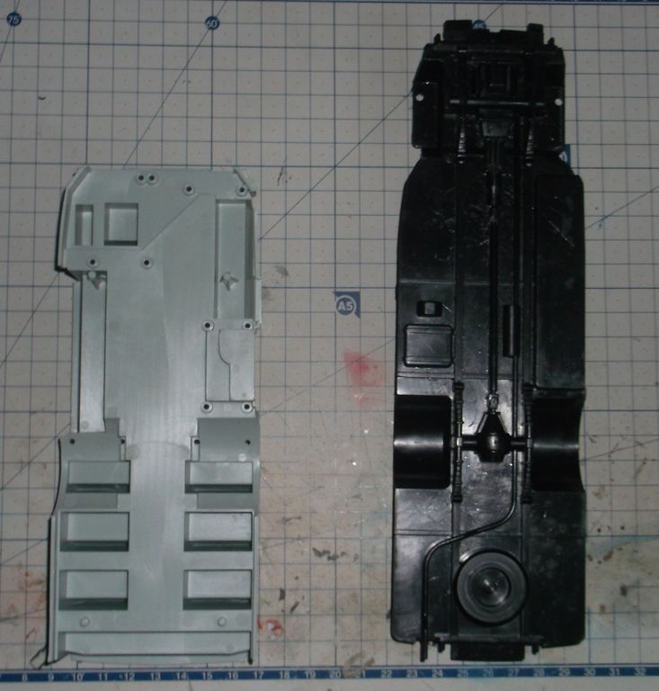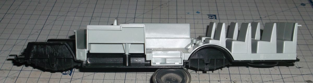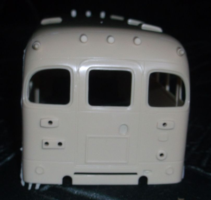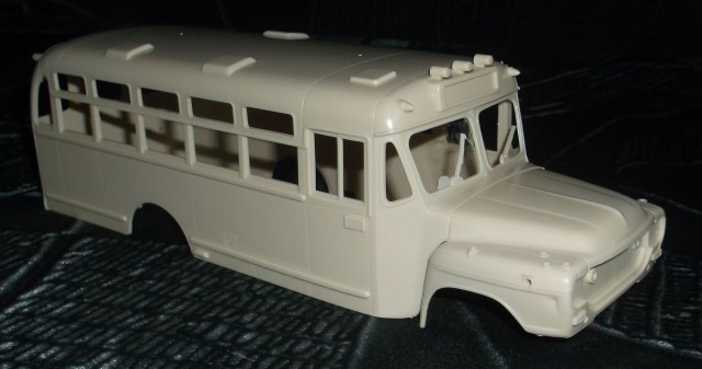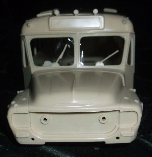 Сам кузов смотрится очень даже ничего. А всё остальное игрушечное. Колёсные диски ещё туда-сюда, а вот шины - тихий ужас. Днище салона и ходовая - единая деталь. Так, как автобус в 32м масштабе в габариты 35го он не попадает никак. Наружная ширина салона 78мм, что в реале даёт 2,73м. Шире КрАЗа! Буду размышлять, что делать дальше. Взял я два автобуса, чтобы сделать из них один длинный, наподобие американского школьного. Получится или нет, пока не знаю.