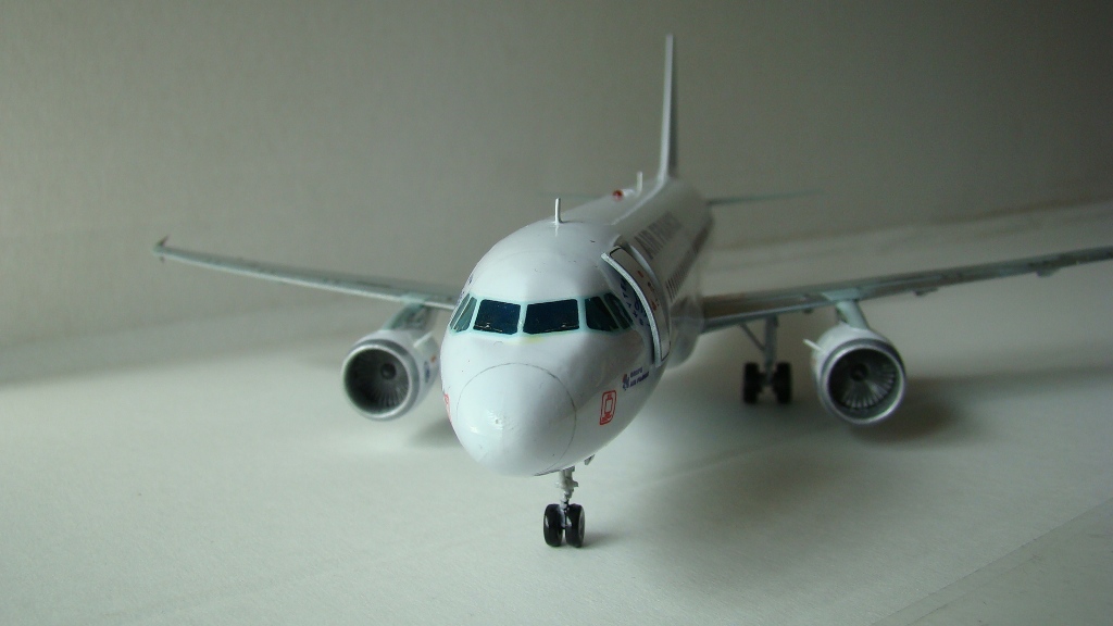 В общем то вы ошибки сами озвучили. Но все же. Некоторая неаккуратность присутствует при переводе декалей на крыле, на фюзеляже. Технички не хватает на пузе. Цвет крыльев не тот, должен быть серым, а не голубым. Расшивки нет да, из баллона можно более аккуратно красить.Сам сейчас собираю 320, там много ньюансов, не мог пройти мимо.