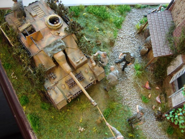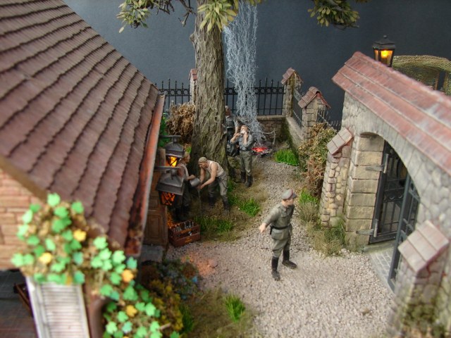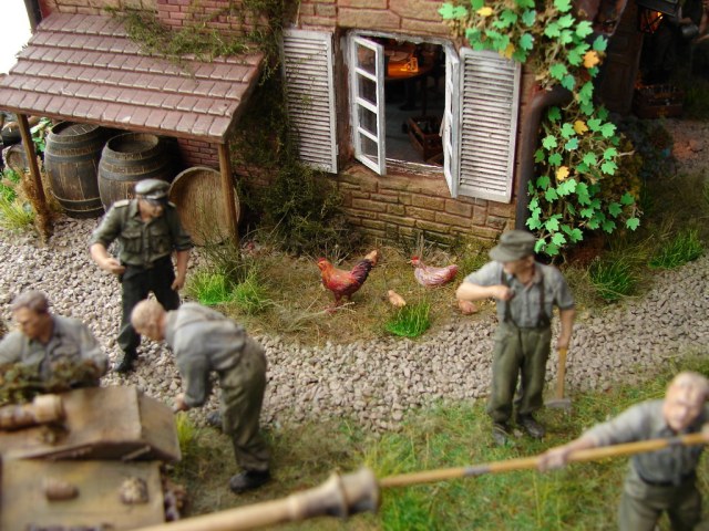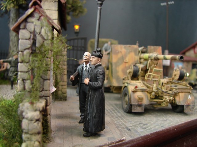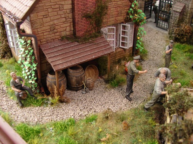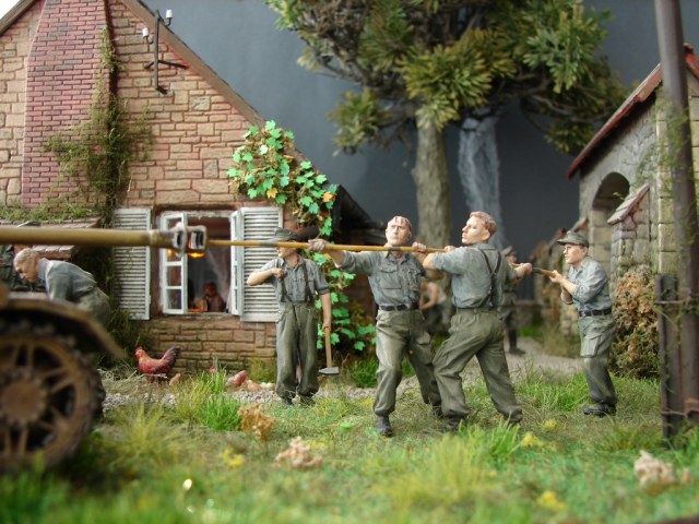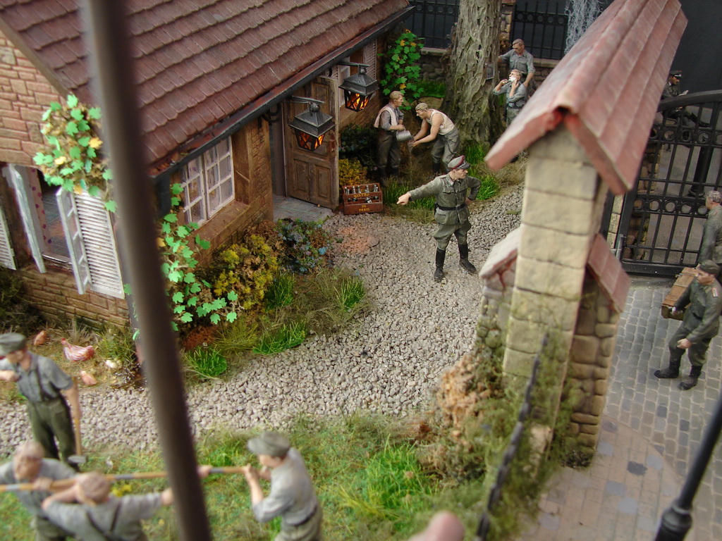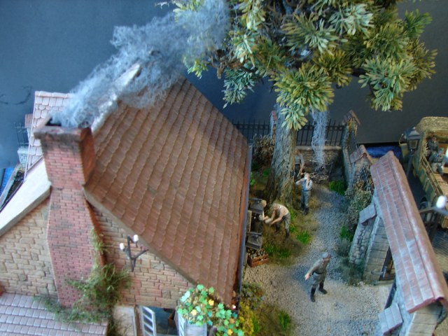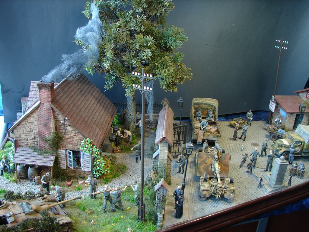 Начальная концепция диорамы изменилась-американцы-парашютисты,с заднего двора,должны были нападать на "мирный,оккупированный", французский городок.Но,со временем,я понял,что это было бы слишком.)
