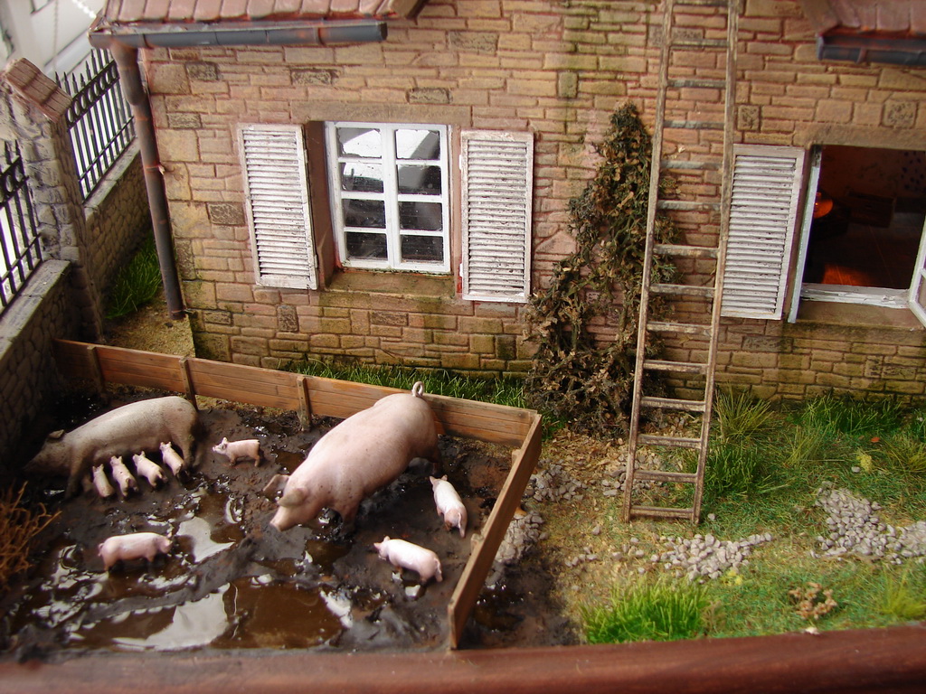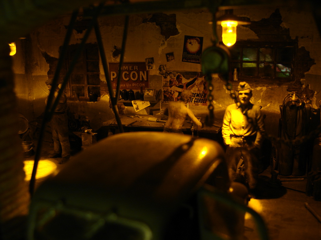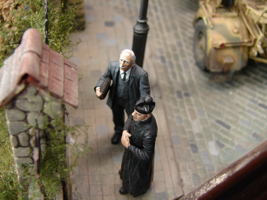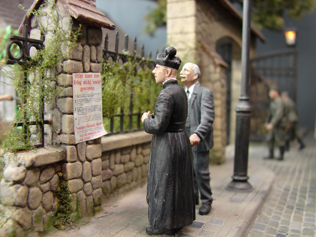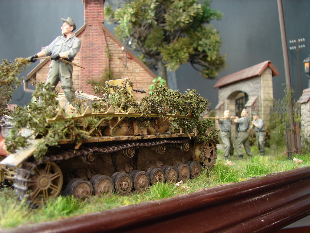 Начальная концепция диорамы изменилась-американцы-парашютисты,с заднего двора,должны были нападать на "мирный,оккупированный", французский городок.Но,со временем,я понял,что это было бы слишком.)
