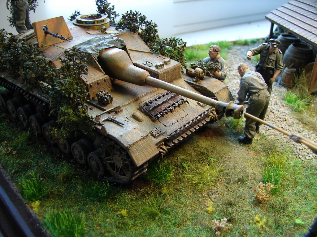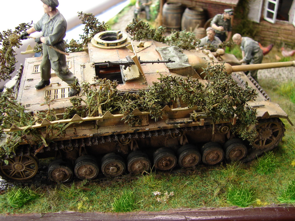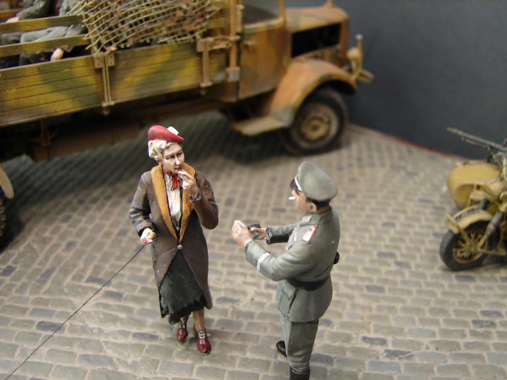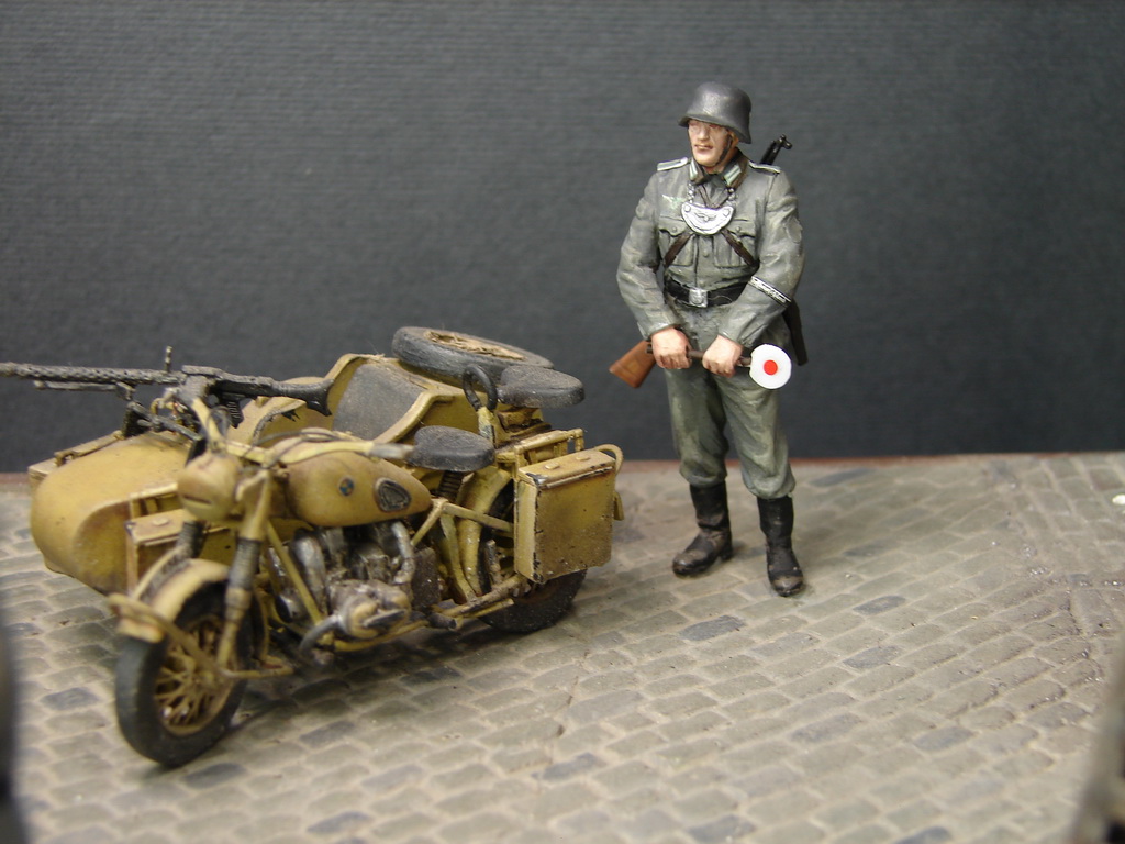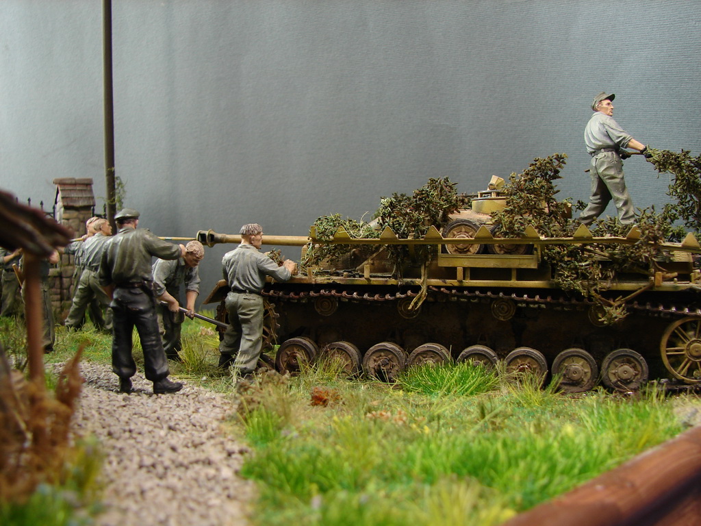 В преддверии киевской выставки,заставил себя доделать свою древнюю "виньетку".Начинал я ее 7 лет назад.Как и подобает начинающему диорама строителю-захотел впихнуть "невпихуемое" на одну подставку,размеры которой продиктованные моим углом для моделей.Скажу,что -немцы и,вообще,тема ВВ2-не моя.Свою "любовь" к технике того периода я как то удовлетворил в детстве,собрав танки от "Огонька")))И даже ,хлынувшие в перестроичные годы полчища моделей разнообразной техники тех лет,так и не возбудили во мне интерес.((( Но есть одно-"но".Нравятся мне весьма аутентичные вещи Германии того периода...Не знаю почему,но это -Флак 8.8 ,Штуг и разнообразные немецкие грузовики.Советская техника тоже имеет своих аутентичных героев,но они у меня оставлены на другой проект.)