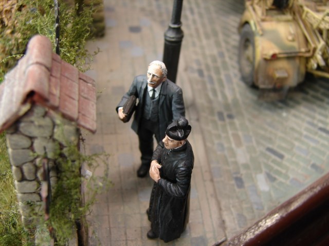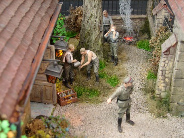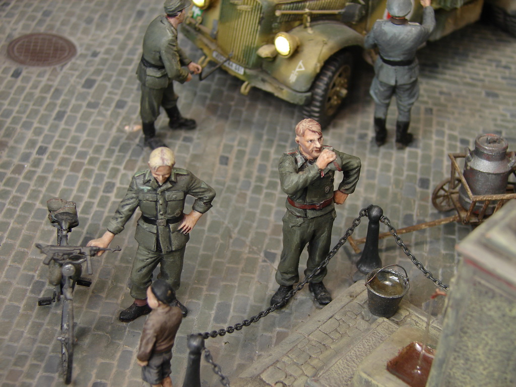 Вообщем,на диораме использованы 18 наборов от Миниарт.50 фигур.Страшненькая сестрица мастербоксовского карлика,за это время куда то убежала.)Для ровного счета добавил фигурку женщины конверсированую от Сталинграда.