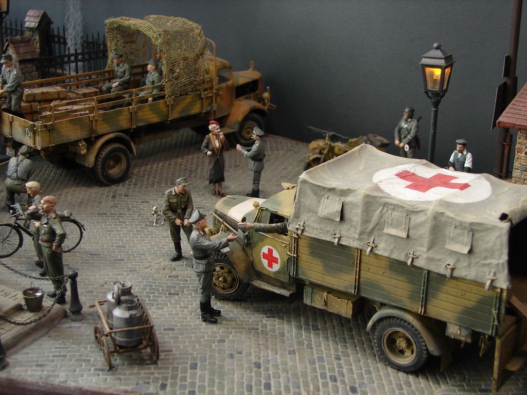 Вот эти модели техники и были мной приобретены.Ну,а когда Миниарт начал делать весьма неплохие модели зданий,аксессуаров и фигур...Понял,что надо это как то объединить.Сейчас понимаю,что эту ошибку совершают все новички....