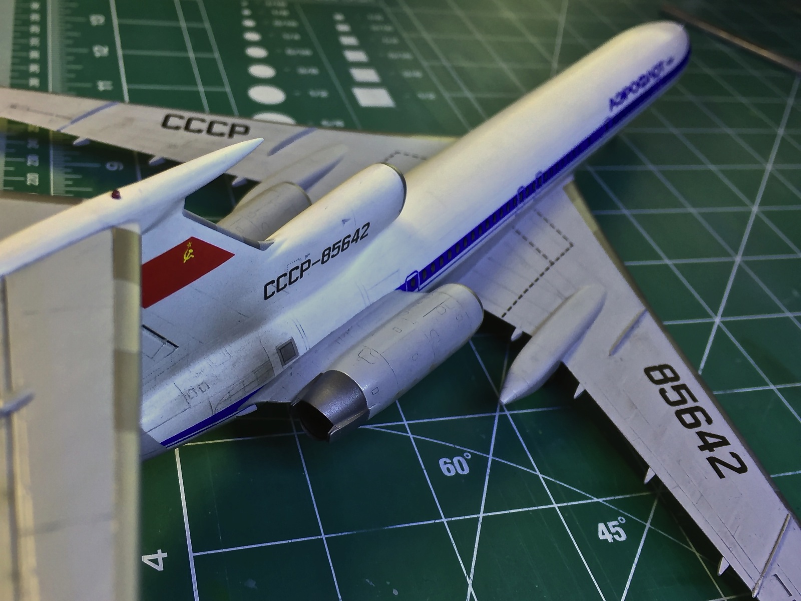 Хочу представить вам сегодня модель советского флагмана Ту-154. Сборку проводил в рамках ГБ на дружественном ресурсе. Прекрасный комплект от "Звезды", легко собирающийся с удобным членением деталей.