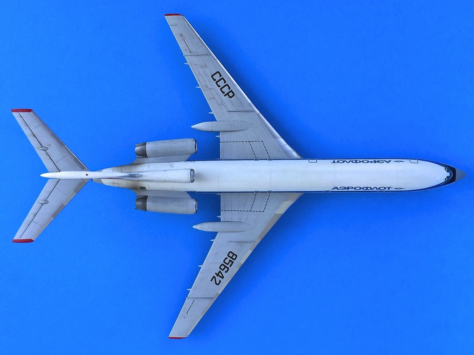 Прекрасно,реальный "ТУПОЛЬ",мои поздравления.По матчасти:в хвостовой части снизу есть еще тех.отсек,створка ВСУ,на законцовках крыла снизу на М есть импульсные огни,которые работают только на стоянке,бустера на элеронах всегда в подтеках смазки (не АМГ)...можно еще многое добавить,но ни к чему.Удачи в следующих работах.
