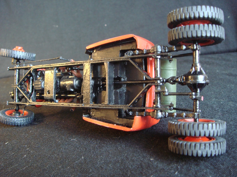Выставляю свою модель хот-рода для конкурса "Хот-Род: Горячий монстр из прошлого". Делал её из остатков набора от звездовской катюши. Хотел сделать именно полноприводную версию машины. Что получилось судить Вам!