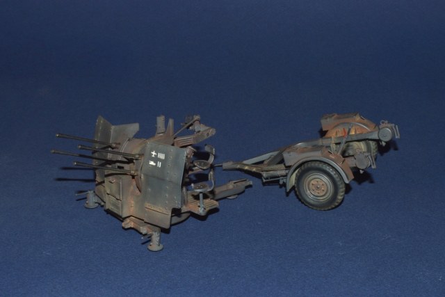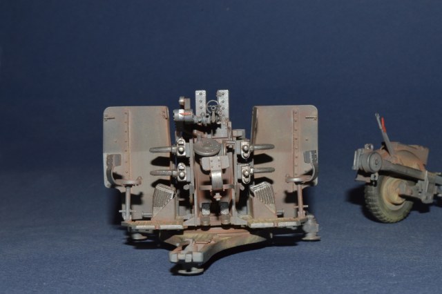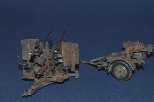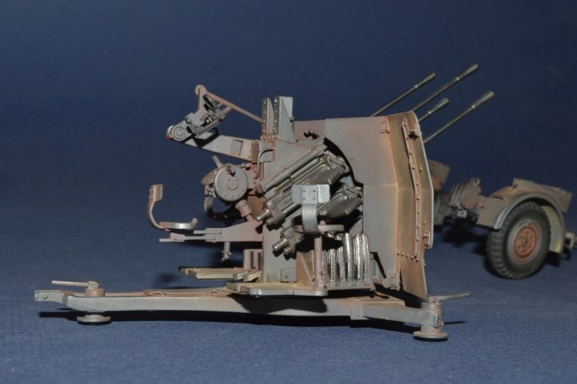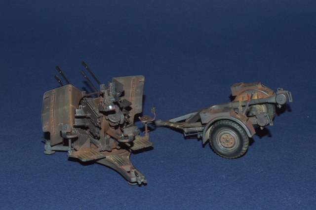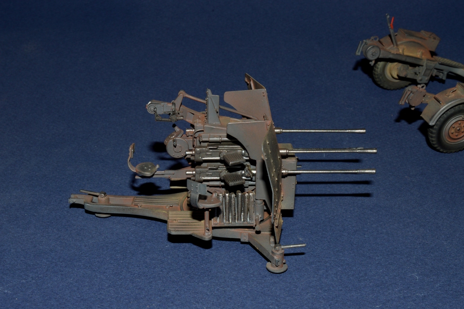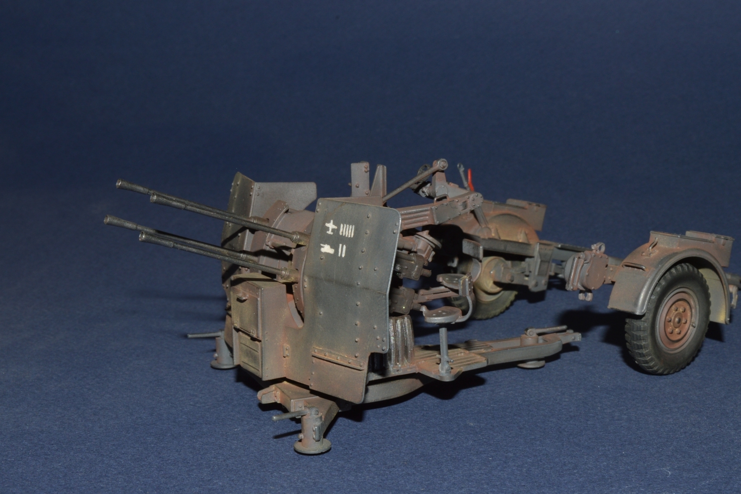 Эта зенитка охраняла портовые военные склады в Гамбурге, там море, соленый воздух. Рыжий налет на краске, это тот тип ржавчины, который образуется не только на металле, но и на окрашенных поверхностях и почти полностью удаляется при протирке масляной ветошью. И ещё, вероятно, красноватая пыль, принесенная ветром с прибрежных шхер.