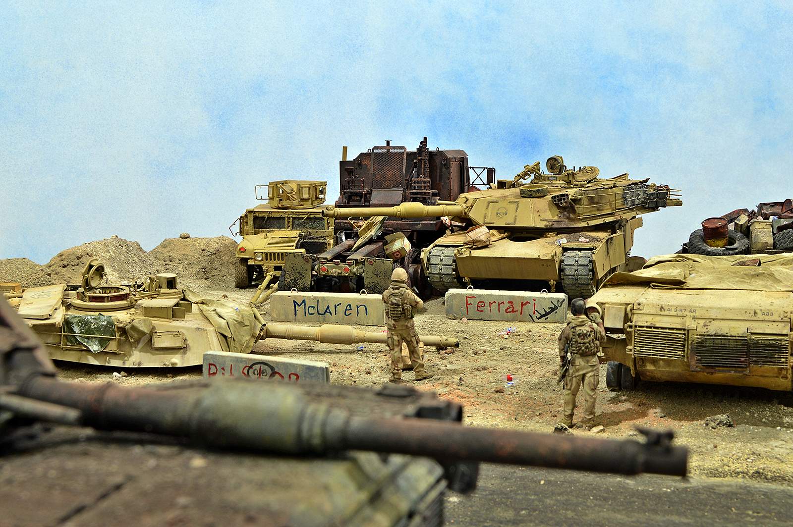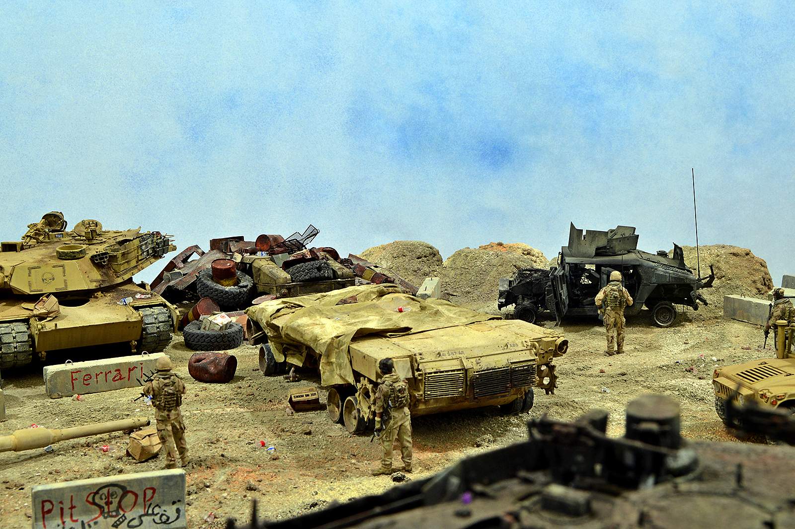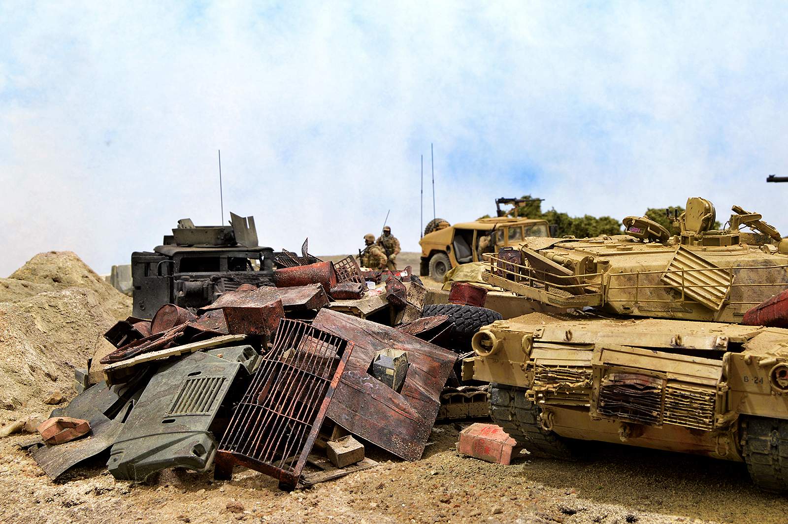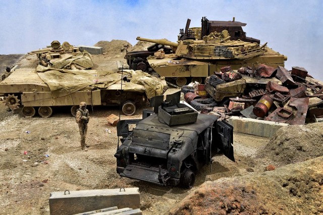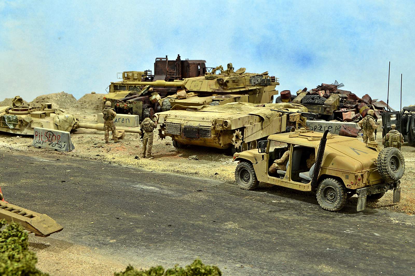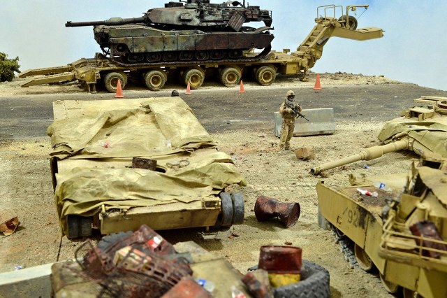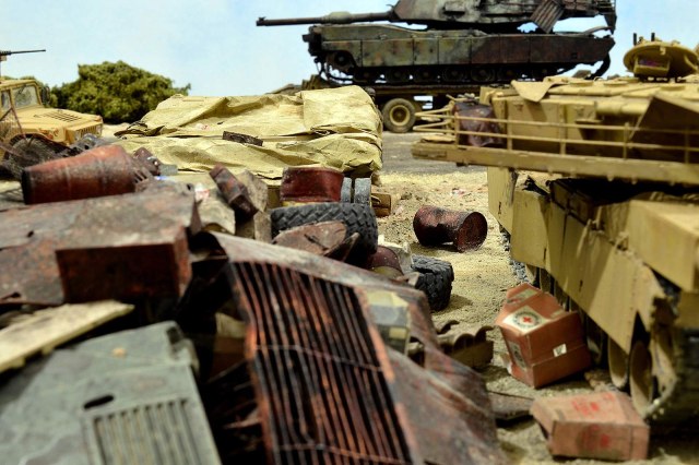 Представляю вашему вниманию американский С.П.А.М. в Ираке в период 2003 – 2005 г.г., или просто свалку разбитой техники. Данная работа это частичная импровизация и выдумка аffтора, сделанная по фото из интернета. Каждая модель – это индивидуальный подход. Все три Абрамса – это прототипы реальных машин…