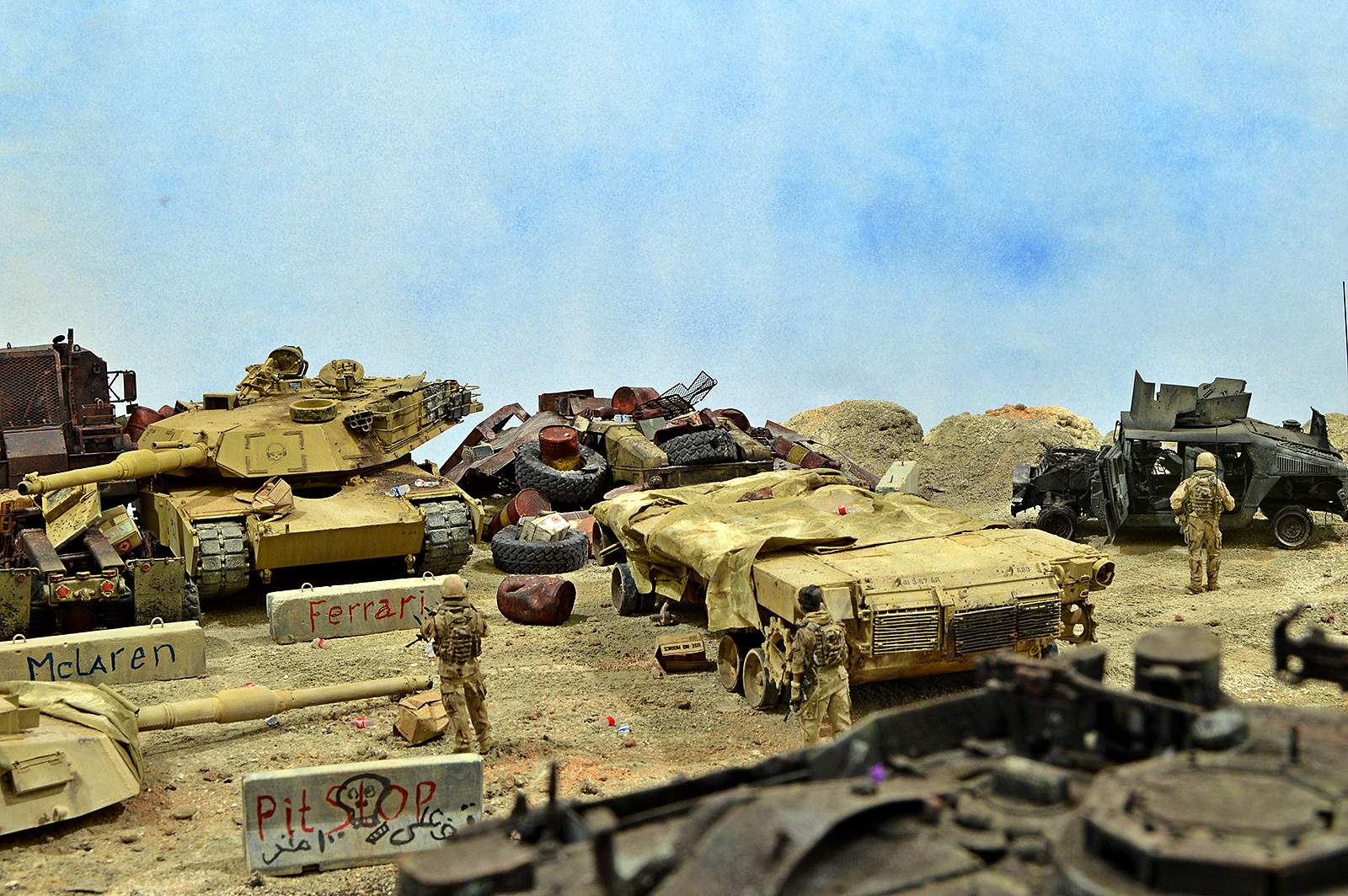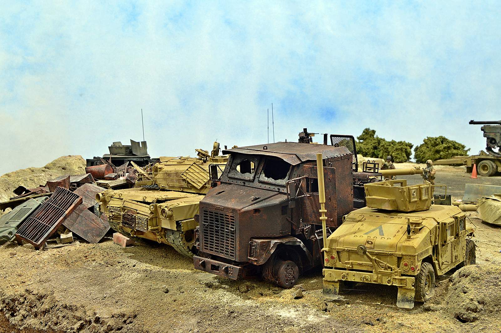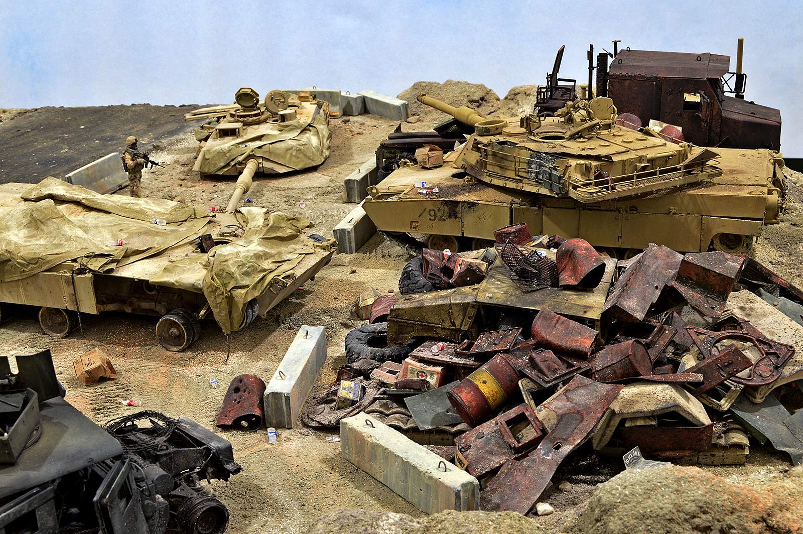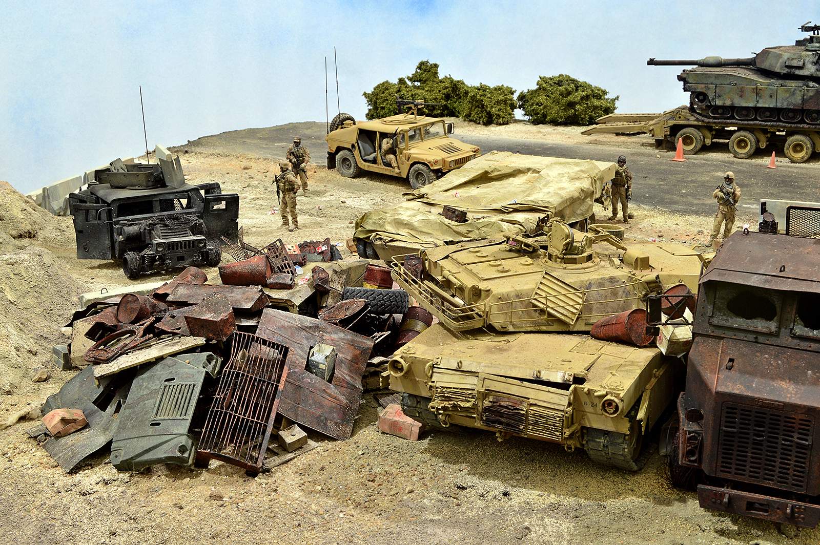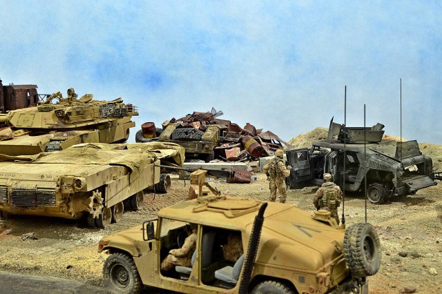 Представляю вашему вниманию американский С.П.А.М. в Ираке в период 2003 – 2005 г.г., или просто свалку разбитой техники. Данная работа это частичная импровизация и выдумка аffтора, сделанная по фото из интернета. Каждая модель – это индивидуальный подход. Все три Абрамса – это прототипы реальных машин…