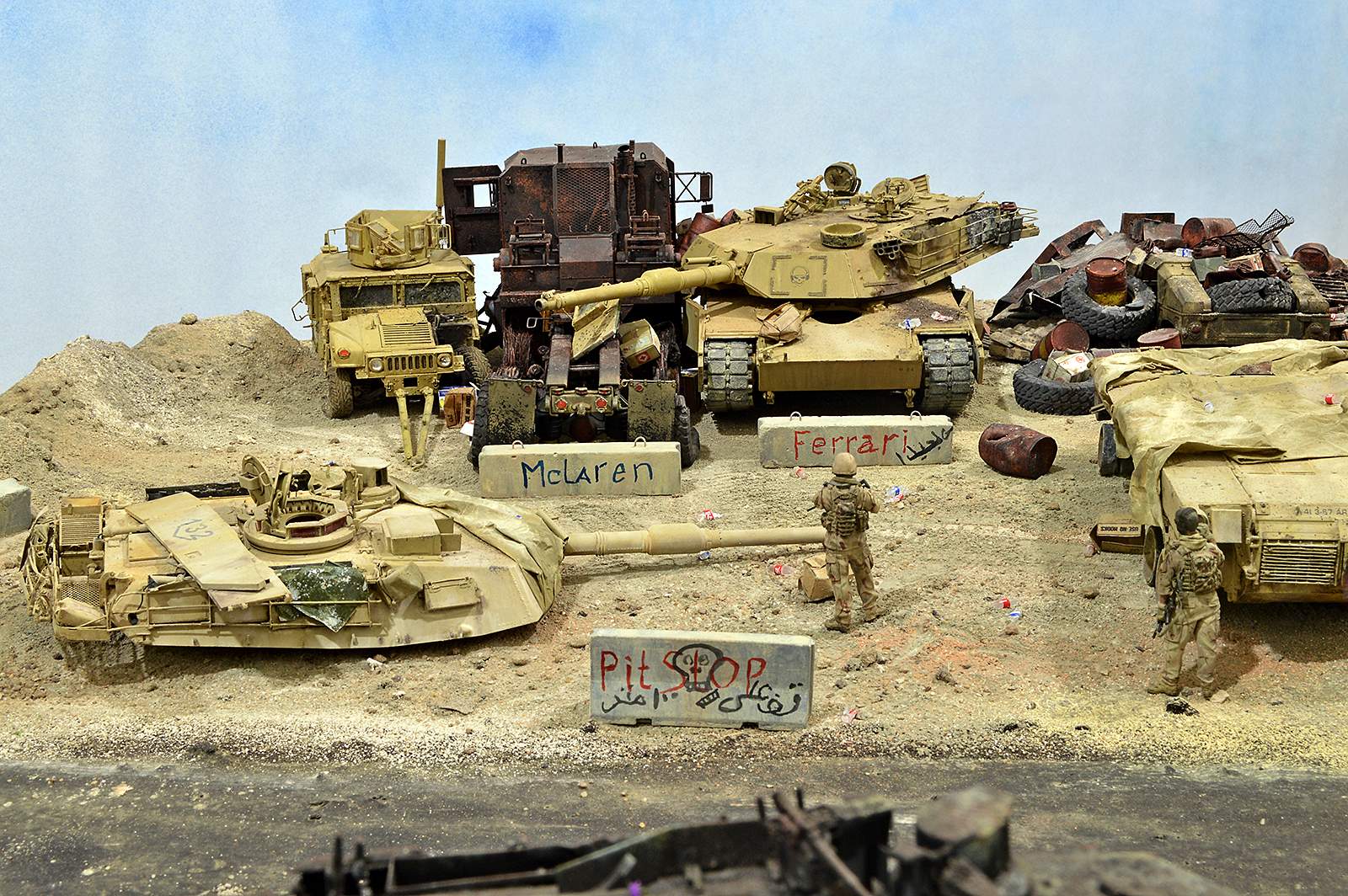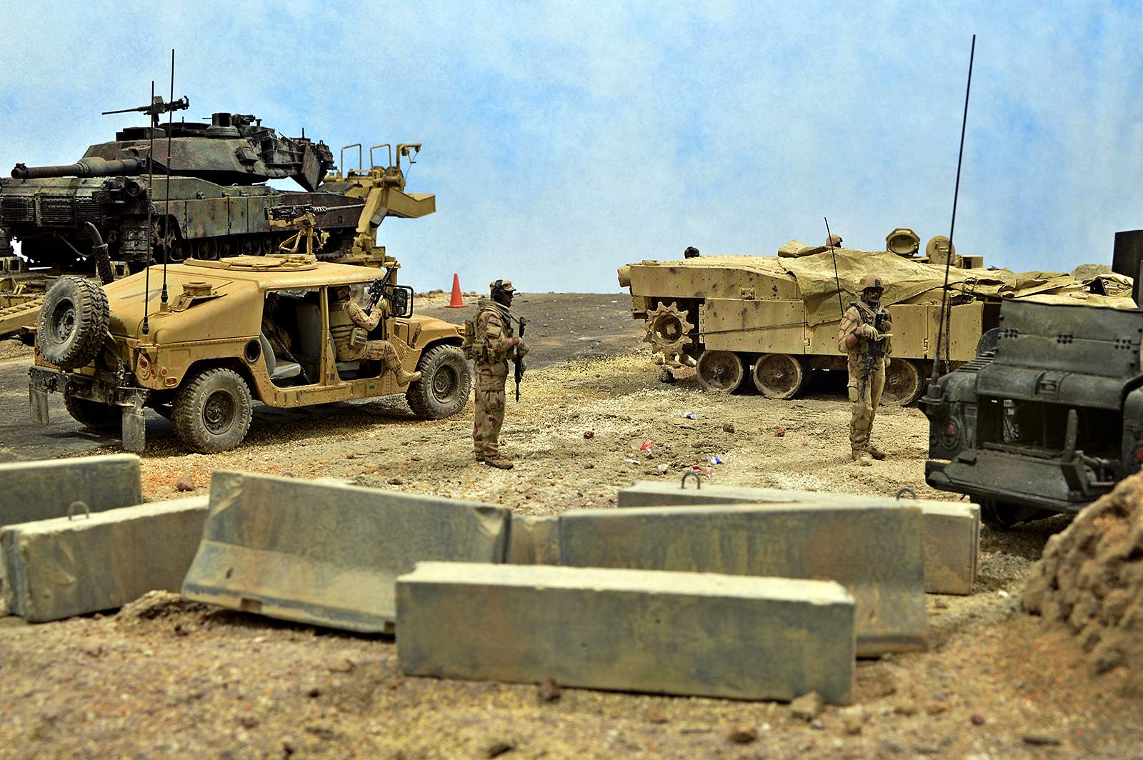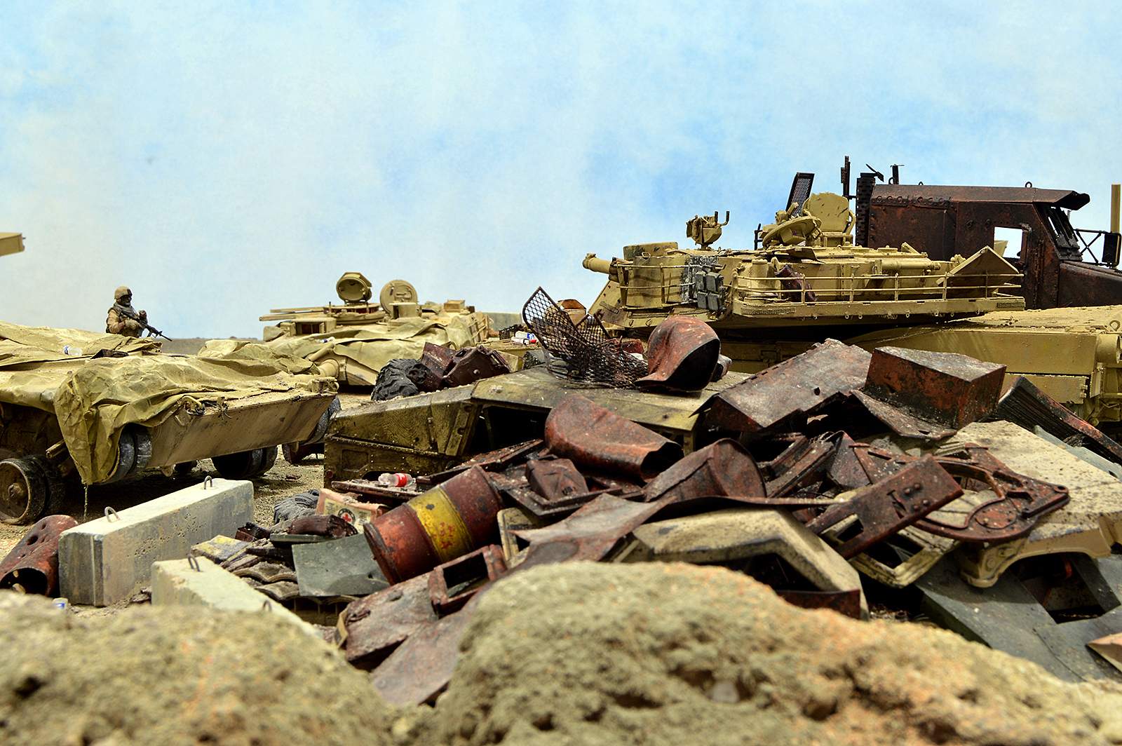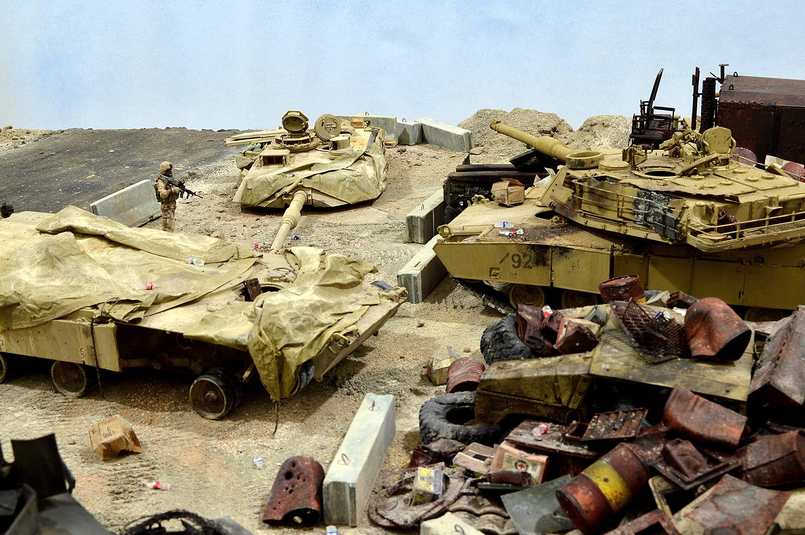 Представляю вашему вниманию американский С.П.А.М. в Ираке в период 2003 – 2005 г.г., или просто свалку разбитой техники. Данная работа это частичная импровизация и выдумка аffтора, сделанная по фото из интернета. Каждая модель – это индивидуальный подход. Все три Абрамса – это прототипы реальных машин…