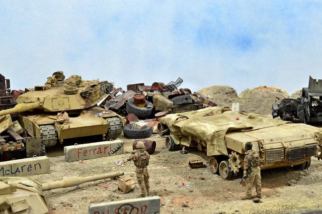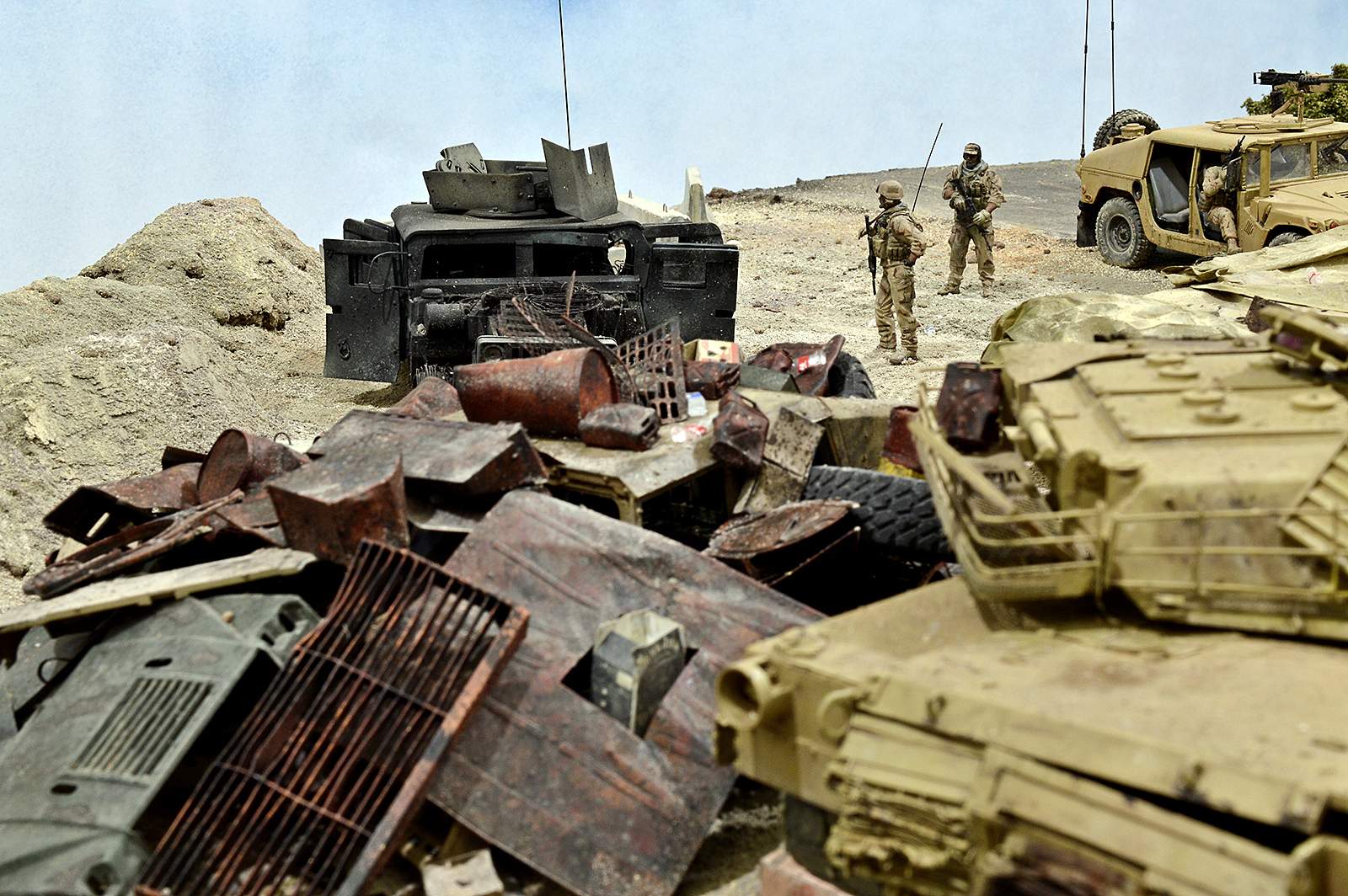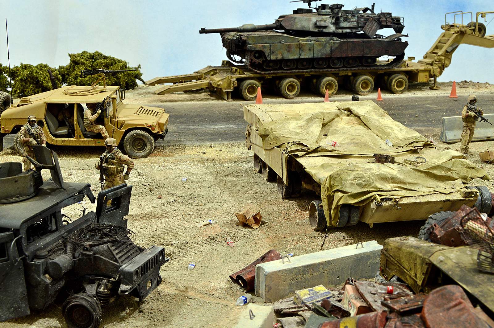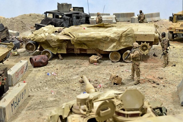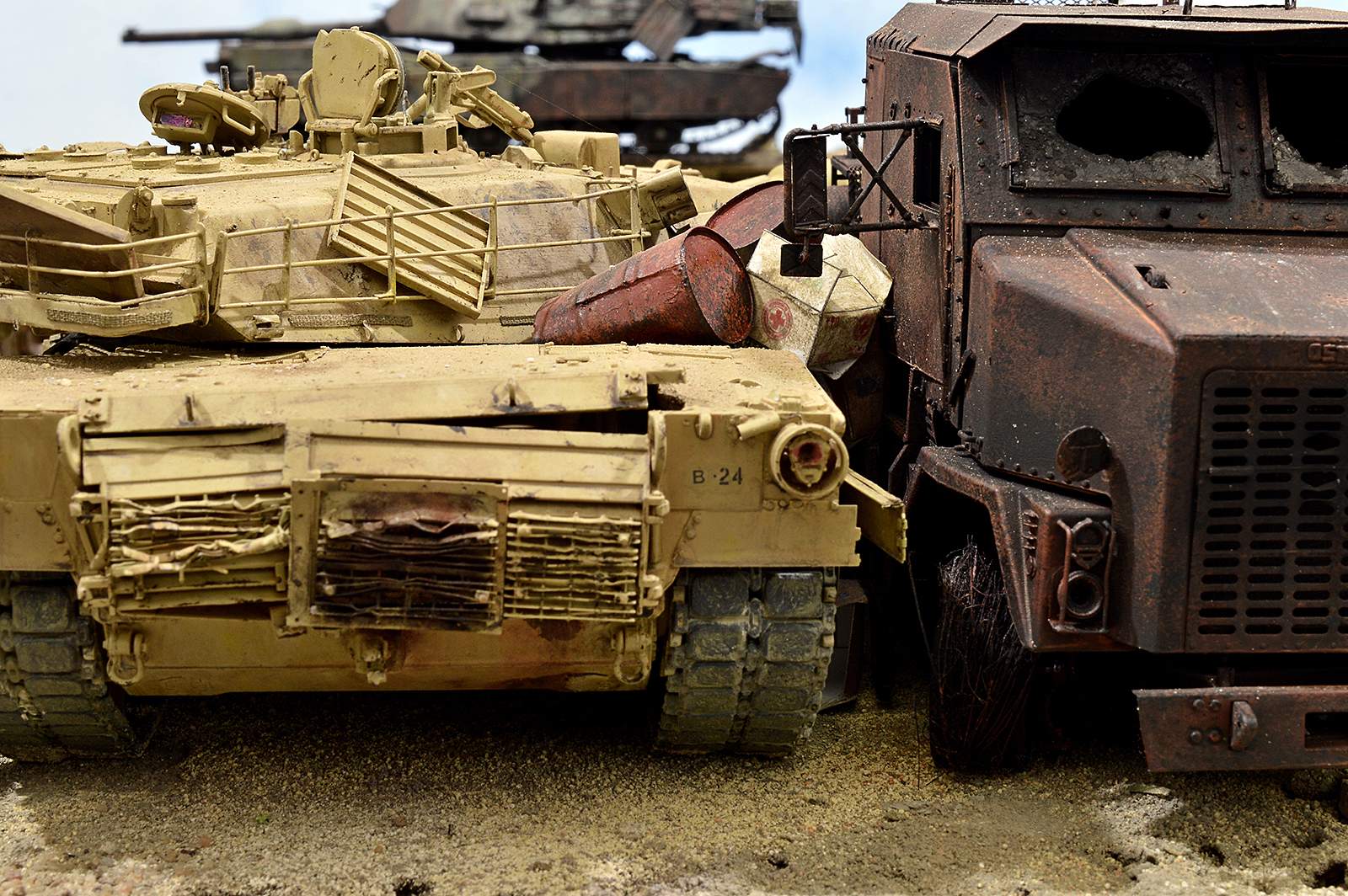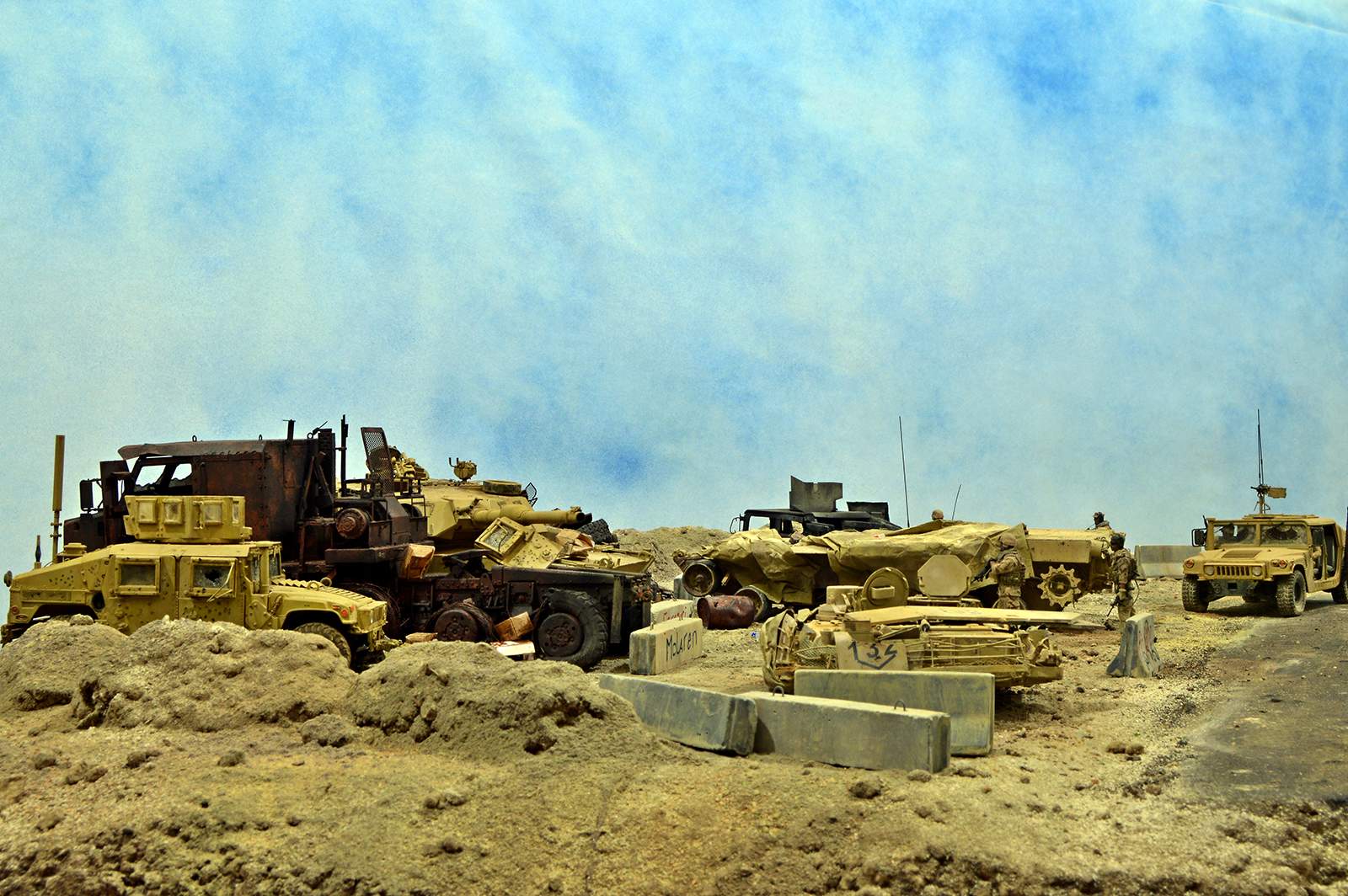 Представляю вашему вниманию американский С.П.А.М. в Ираке в период 2003 – 2005 г.г., или просто свалку разбитой техники. Данная работа это частичная импровизация и выдумка аffтора, сделанная по фото из интернета. Каждая модель – это индивидуальный подход. Все три Абрамса – это прототипы реальных машин…