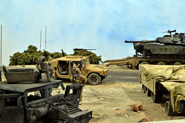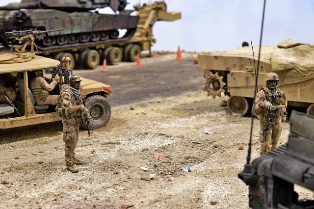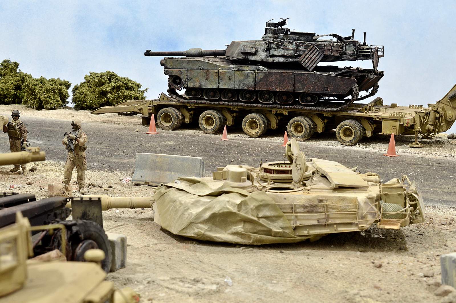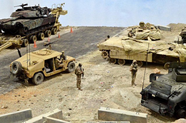 Это просто СТРАСТЬ! Не хватает только Страйкера и бульдозера какого-нибудь, или погрузчика. Возможно, ограды. Имеется вопрос про Абрамс на телеге, реально так катки плавятся?