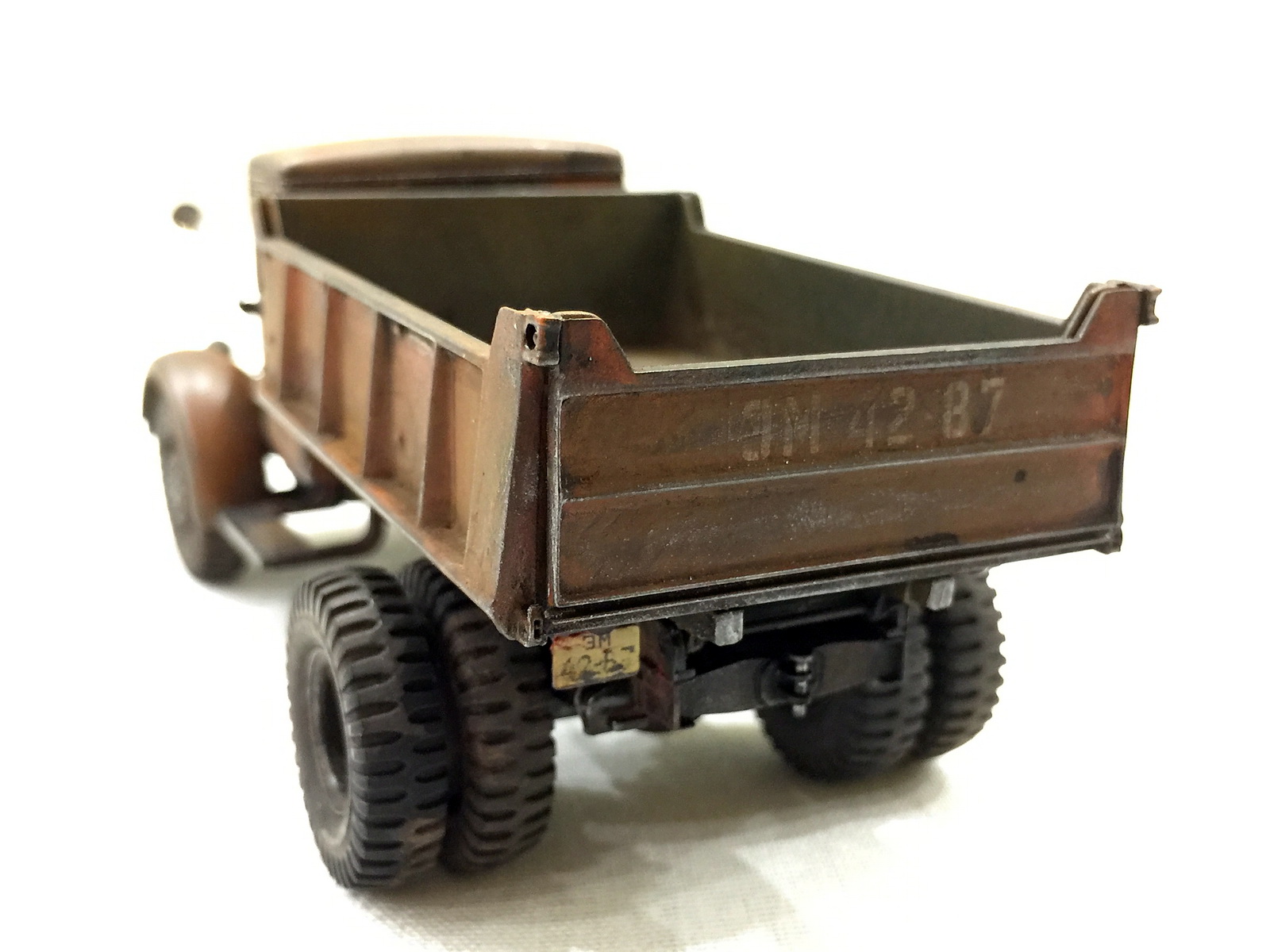 Грунтовал Валехо, базовый слой (оранжевый) делал из Pacific 88 вперемежку с оранжом от Звезды. Везеринг делал всеми имеющимися у меня пигментами. Смывал Zipмакетом.