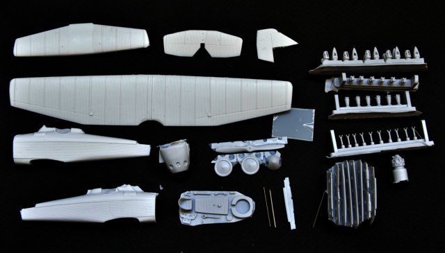 Долгожданная для многих модель истребителя И-4 была не так давно выпущена А.Н. Козыревым в виде смоляного набора. Набор выпускается в двух вариантах - строевого и для системы "Звено-1" для установки на крыло ТБ-1. Модель упакована в стандартную коробку с наклеенной схемой окраски,так же дан один лист схемы отдельно. Декаль на семь вариантов маркировки И-4. Детали набора изготовлены и отлиты хорошо,без видимых недостатков.Прекрасно воспроизведена гофрированнная поверхность. Обтекатели цилиндров двигателя даны отдельными деталями.Мне к сожалению не удалось показать оребрение цилиндорв М-22,но она там есть,масштабно выполненное - это 3D разработка. Сборка простой быть не обещает,поскольку это довольно небольшой биплан,и модель создана вручную,что подразумевает некоторое приложение рук и сноровку при постройке . Но в итоге мы получим отличную модель.