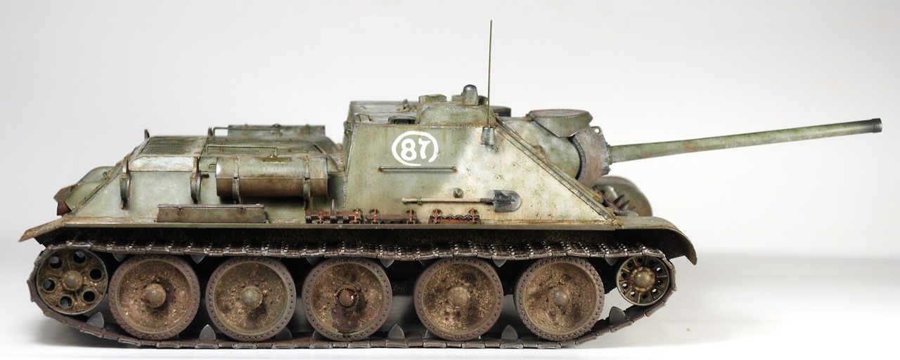 Работа удалась.Всё прекрасно.Замечал,что у этих СУ-шек-траки натянуты бывают-я это к тому,что левая по ходу смотрится более натянутой(правая в более выгодном виде-скажем так-с приятной слабиной),НО это придиризм-чистой воды-работа красивая.С уважением