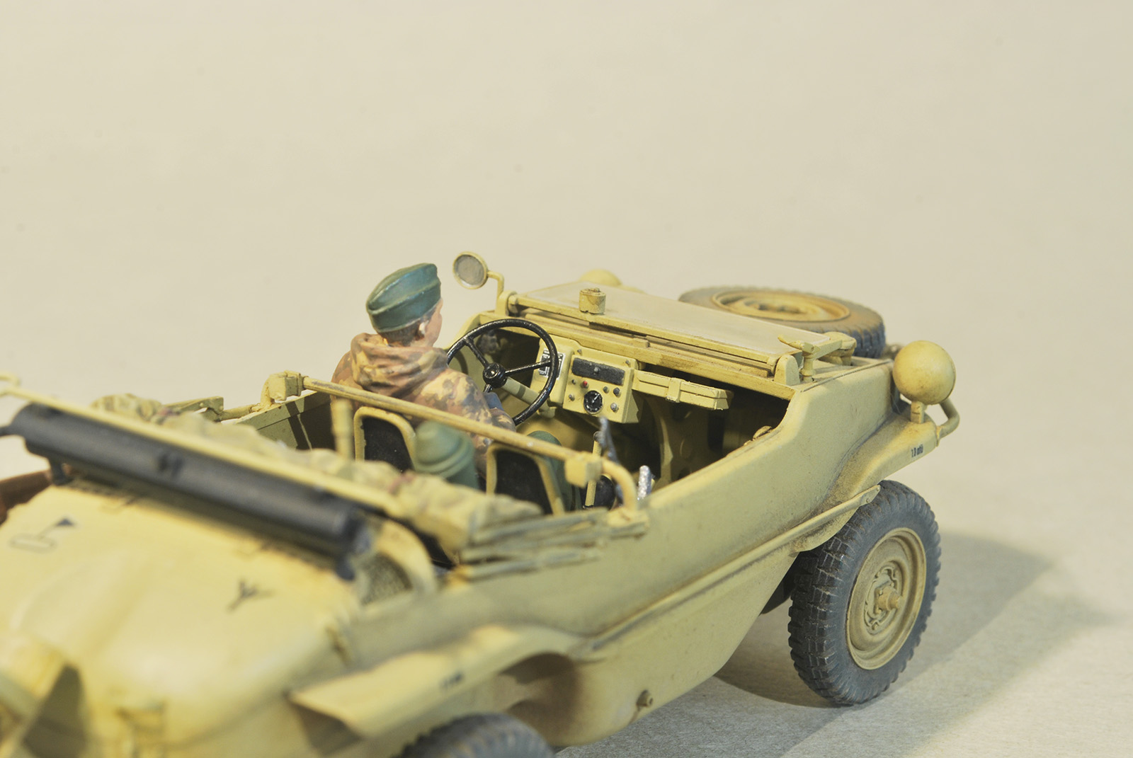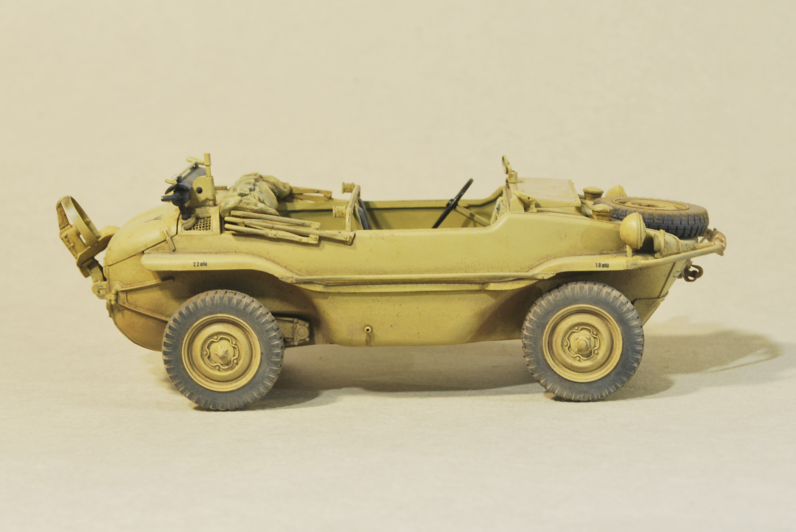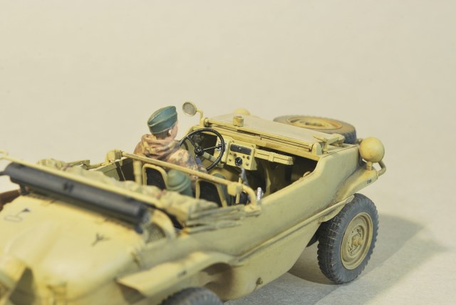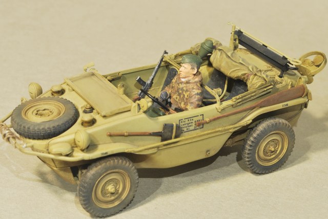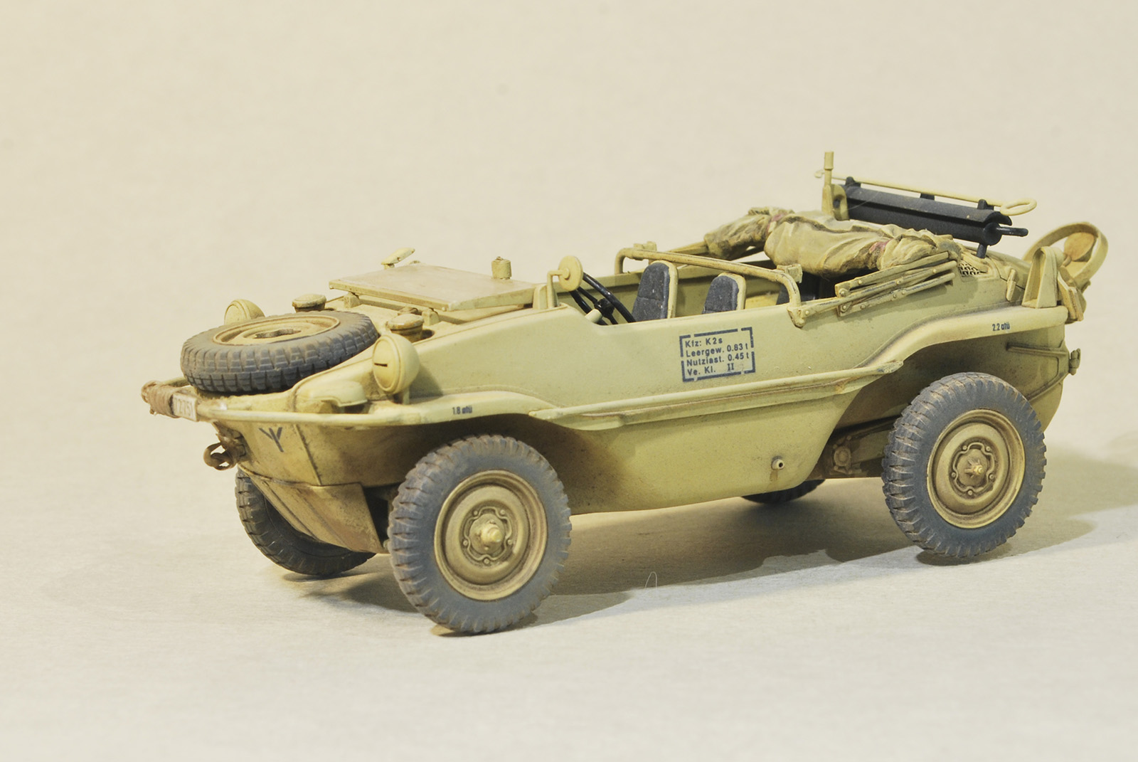 Сборка осуществлялась из двух наборов от Tamiya, "Schwimmwagen Type166" (35224) и "Frontline reconnaissance team" (35253). Небольшие проблемы доставило состыковать верхнюю и нижнюю части корпуса, пришлось использовать шпаклевку, в остальном сборка прошла хорошо и приятно.