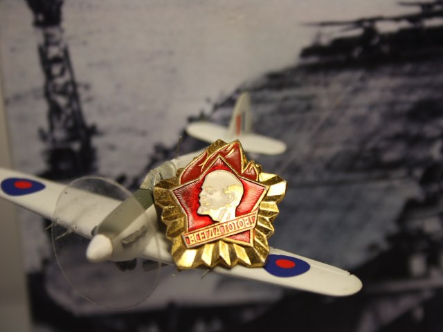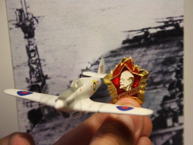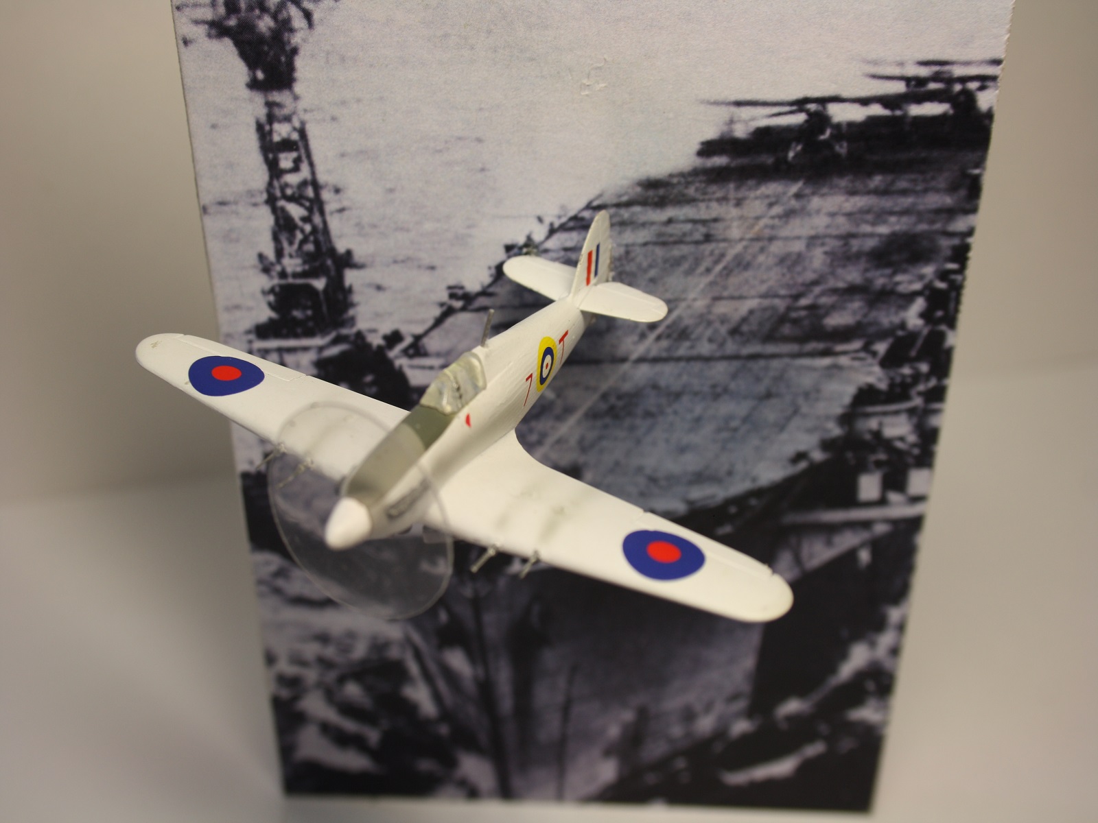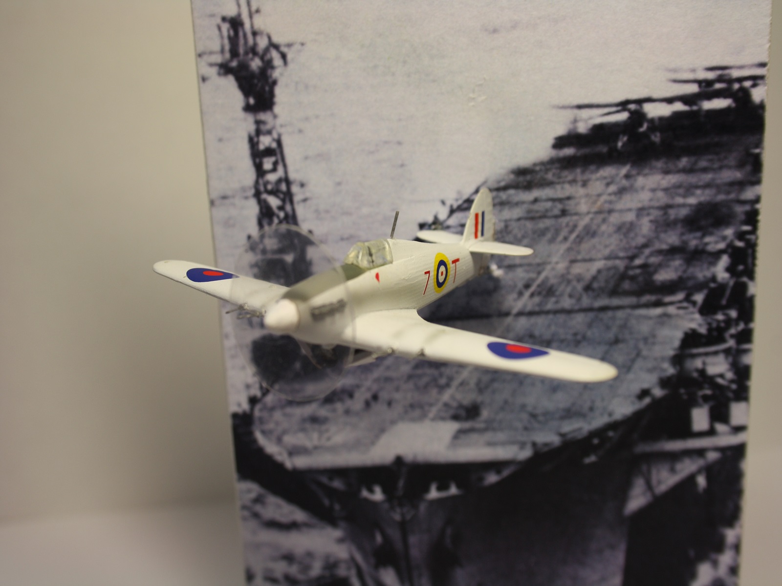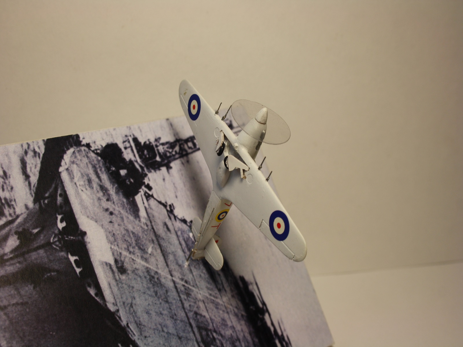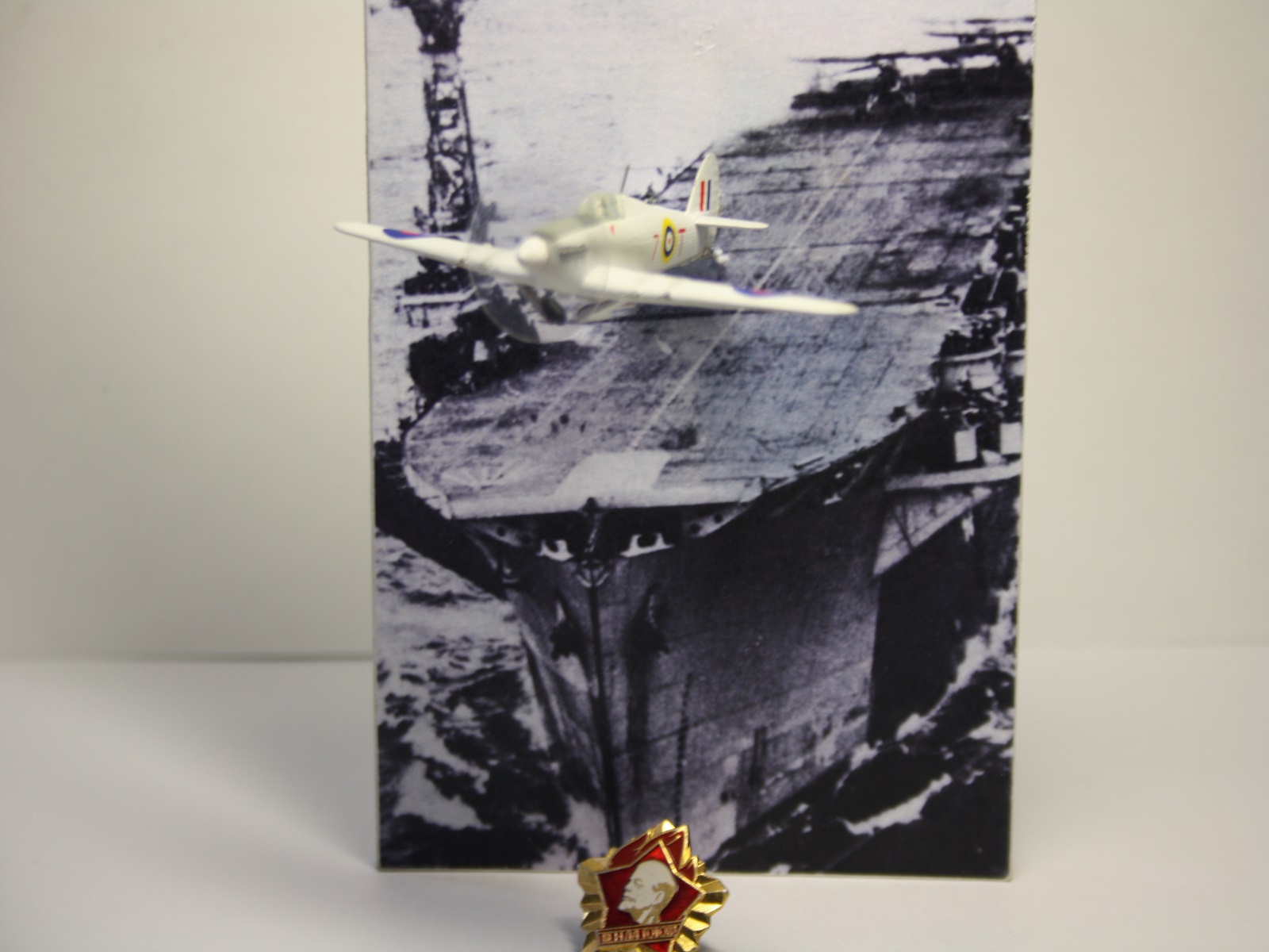 На этой машине младший лейтенант А.Р.Бюргхем сбил 26-го мая 1944 г. немецкий Ju.290. Вероятно эмблема была изображена только по правому борту машины. В отличие от самолетов наземного базирования эмблемы на морских машинах часто наносились только правому борту (так они были видны с башни авианосца). HMS Nairana был британским эскортным авианосцем,переделанным из транспортного корабля.