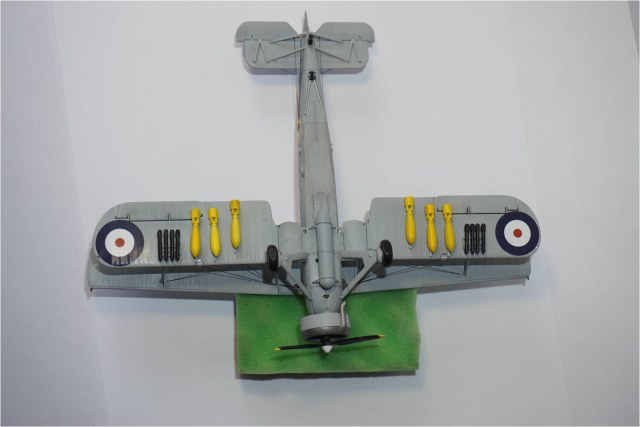 Да, бомбы действительно были для меня камнем преткновения. На некоторых фотографиях кажется что они оливкового цвета, однако, фотографий именно этого борта с бомбами именно для этой операции я не нашёл, поэтому решил довериться информации из инструкции. Яркий жёлтый цвет приглушил (насколько можно) серой основой. Стабилизаторы изначально вообще хотел из бумаги скрутить, потом "забил". Немного сточил шкуркой, чтобы в глаза не так сильно бросались. Каюсь, не люблю я делать подвесное вооружение.